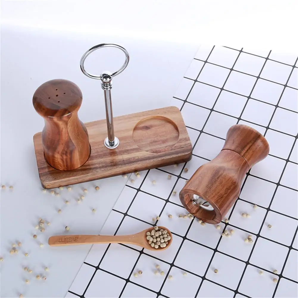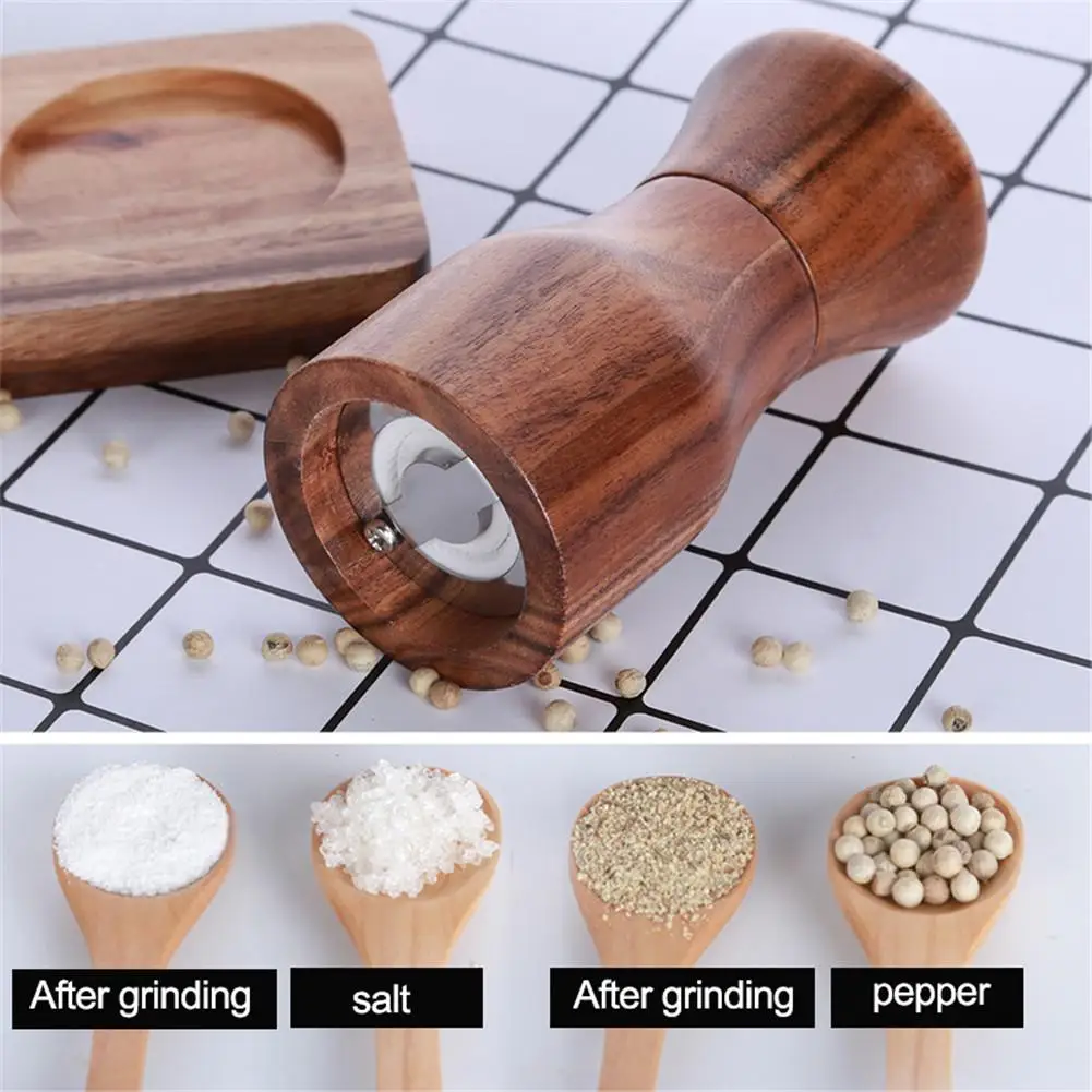 Ручная мельница для перца, набор шлифовальных станков из натурального дерева акации, регулируемая деревянная мельница для соли и перца, солонка, кухонные инструменты