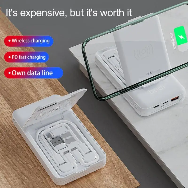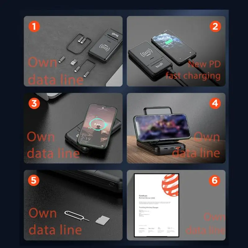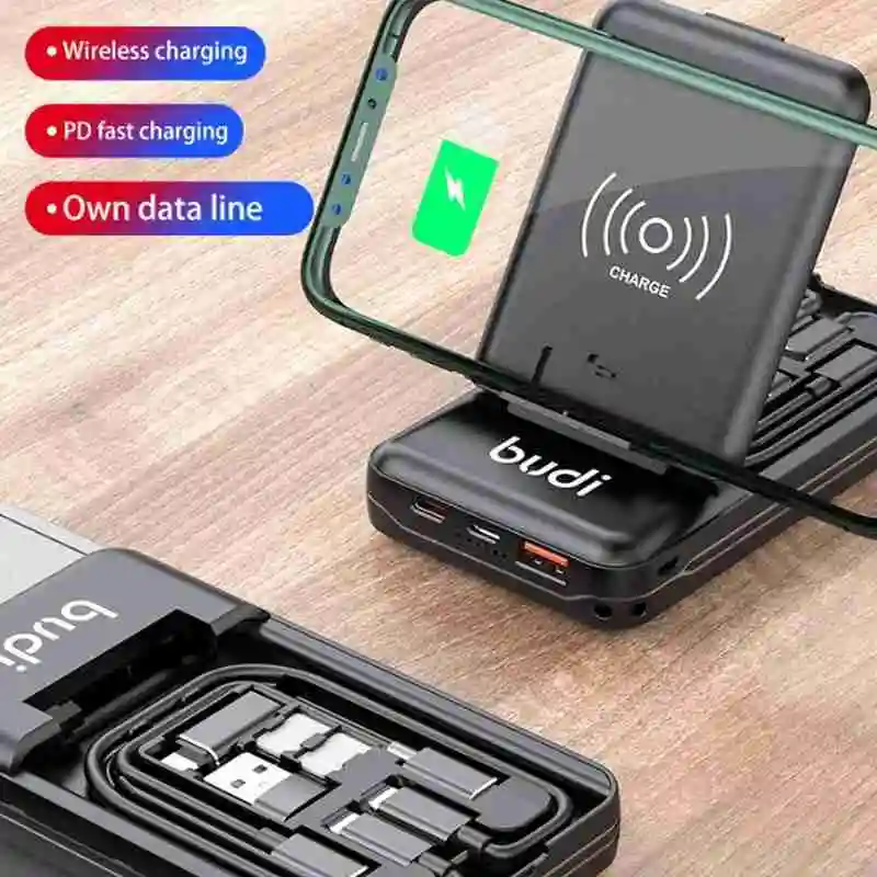 Budi Многофункциональный блок питания (10000mAh PD QC 18W Power bank, мульти кабель 6 типов кабель, сим-комплект. Подставка для телефона)