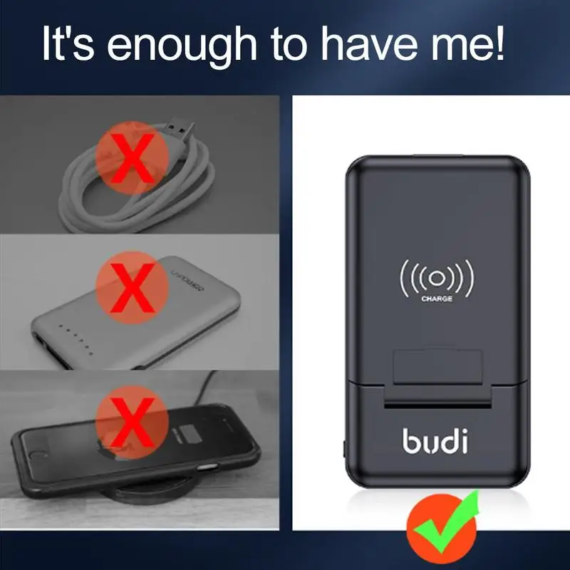 Долгий полет? Фильм? Громкая связь? Одна секунда, чтобы настроить многофункциональную коробку budi в качестве подставки для телефона. Что вы можете смотреть фильм на вашем телефоне громкой связи во время зарядки одновременно! (многофункциональная коробка budi поддерживает беспроводную зарядку)