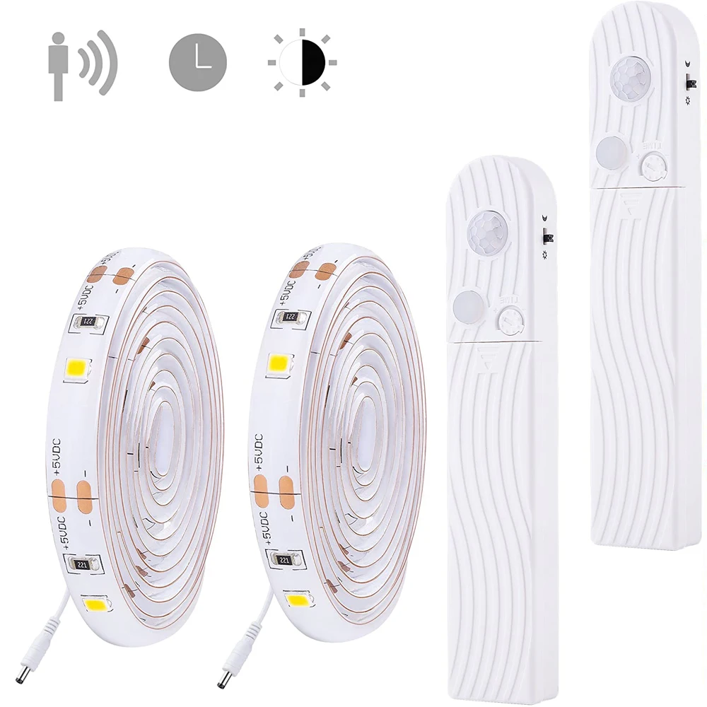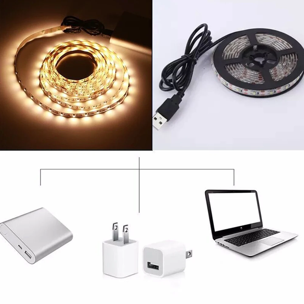 USB светодиодный светильник в помещении с датчиком движения PIR гибкая лента 5 в светодиодная водонепроницаемая лампа 1 м 2 м 3 м 2835SMD 4AAA батарея