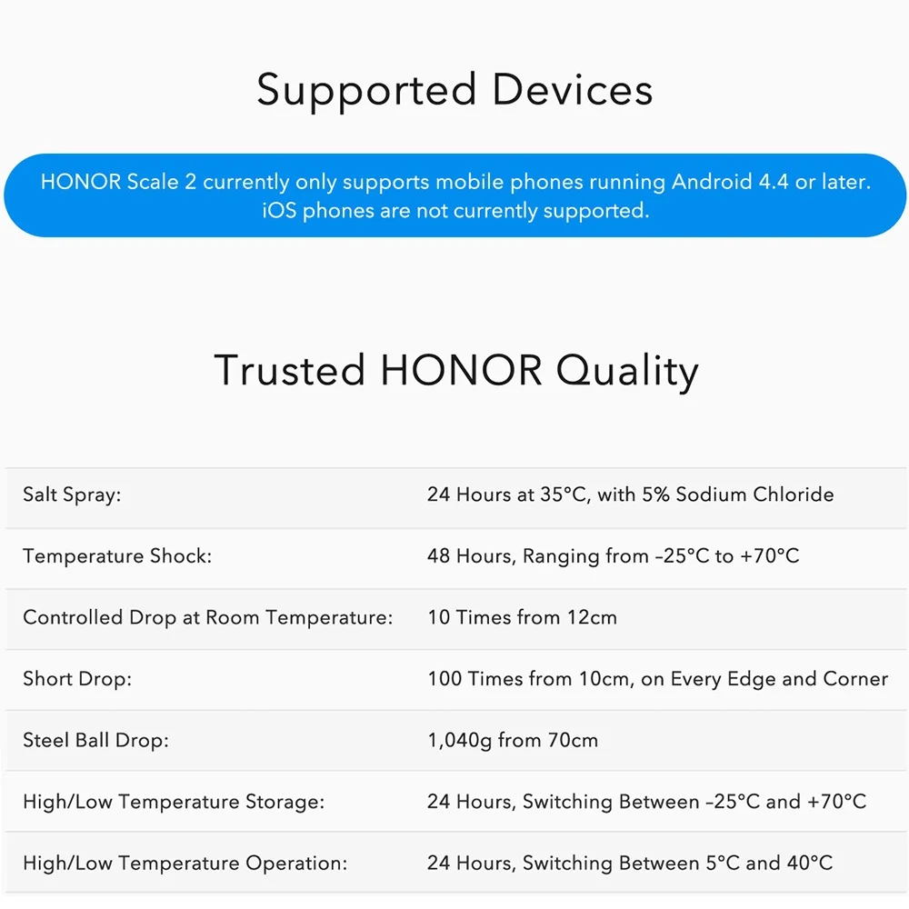 * HONOR Scale 2 может не распознавать пользователей, чьи данные тела очень похожи на другие.
