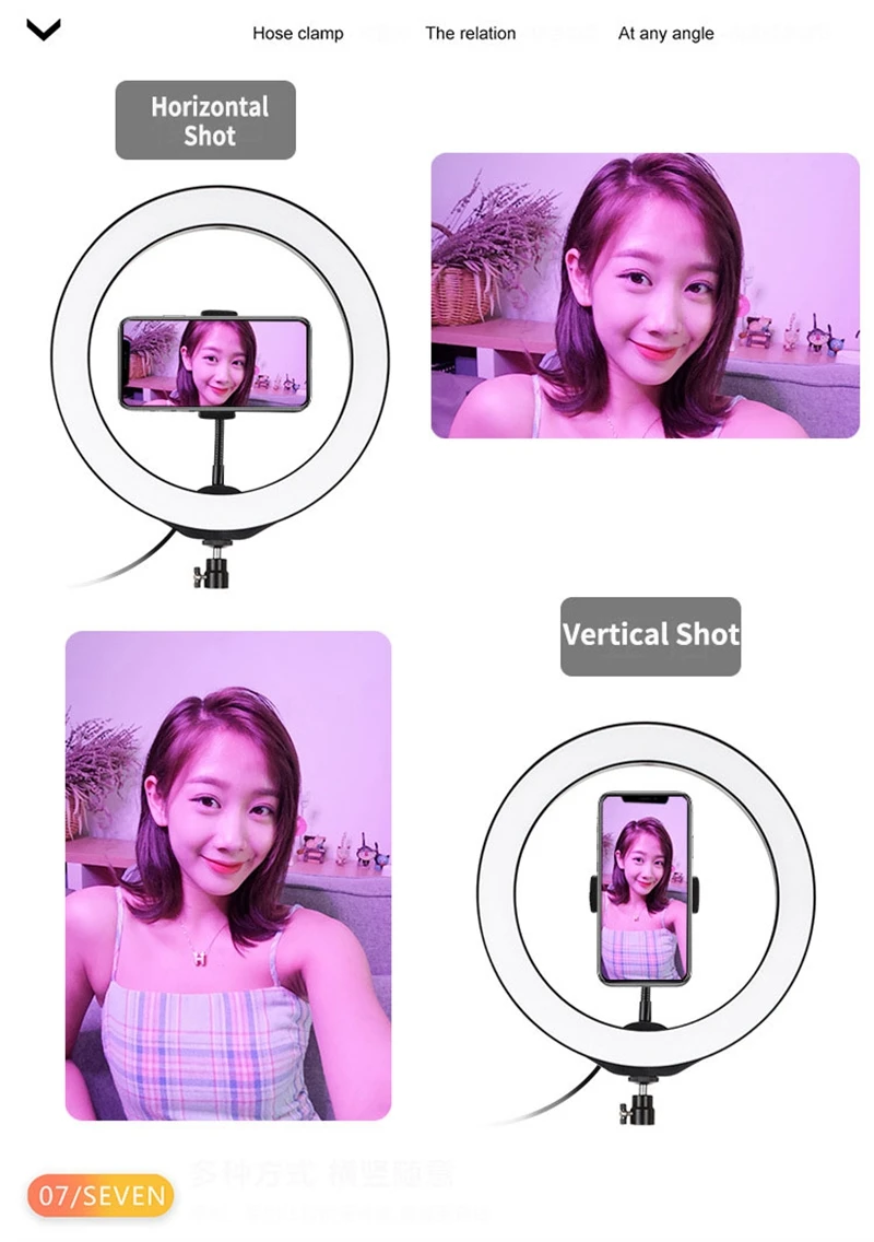 1. Светодиодный кольцевой светильник можно установить на держатель и взять его в любом месте, его также можно снять с подставки в любое время, шаровая Головка штатива может вращаться на 360 градусов, можно свободно регулировать под любым углом. 2. Кольцевой Светильник изготовлен из 3x 20 штук энергосберегающий светодиодный бусины, рассеивания тепла отличное постоянное потребление тока и высокий индекс цветопередачи, смягчить светильник источник и улучшить кожу тон в портреты фотографии. 4. Режим цветового освещения RGB Регулируемая яркость на ваш выбор, вы можете настроить цвет и яркость очень легко, идеальная яркость может быть достигнута без установки дополнительных красочных фильтров. Мягкий естественный светильник разных цветов освещает вашу красоту в разных случаях. 5. Широкое Применение: Широко применяется при естественном освещении под обстановку вне светильник, светильник портретной съемке, на модных показах, рекламная фотосъемка, съемка видео и т. д. 6. Легкий и портативный дизайн: удобно использовать и носить с собой во время путешествий или работы на открытом воздухе и т. Д. 7. Функция рассеивания тепла: защита поверхности от царапин, Нижняя оболочка из АБС-пластика с отверстиями для рассеивания тепла. 8. Зажим для телефона подходит для мобильного телефона шириной 5,7-9 см. 9. С новейшим Bluetooth 4,0 беспроводным умным светодиодным полноцветным RGBW заполняющим светом, для различных сцен заполняющим светом, через Android 4,0 и выше, iOS iPhone 4S выше Система смарт-устройств для управления выключением/вкл заполняющего света, регулировка цвета и яркости света