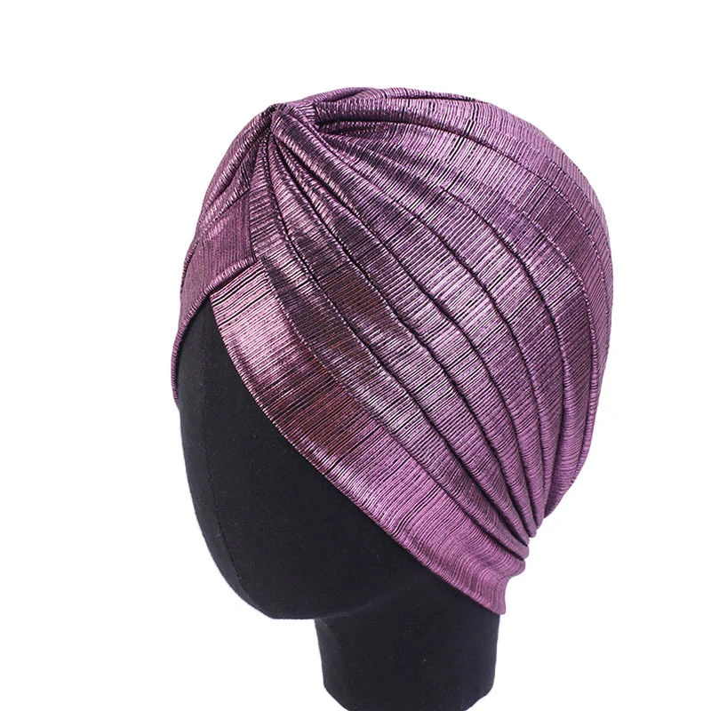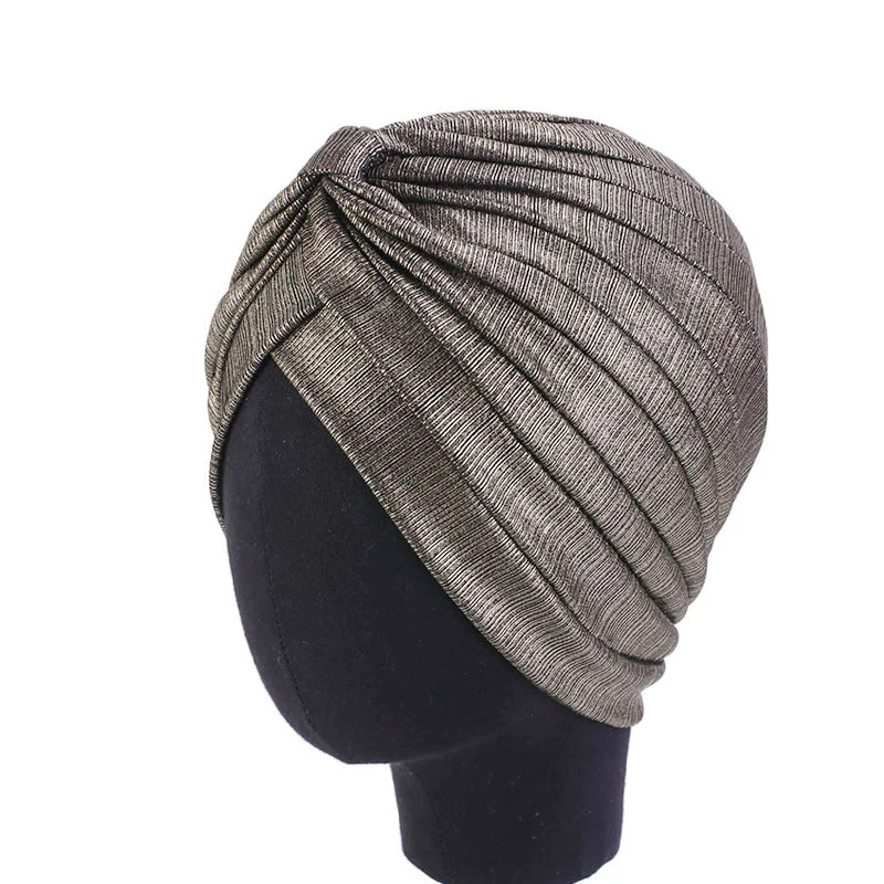 Женская металлическая плиссированная тюрбан блестящая хиджаб головной убор шапочка мусульманская Кепка Chemo