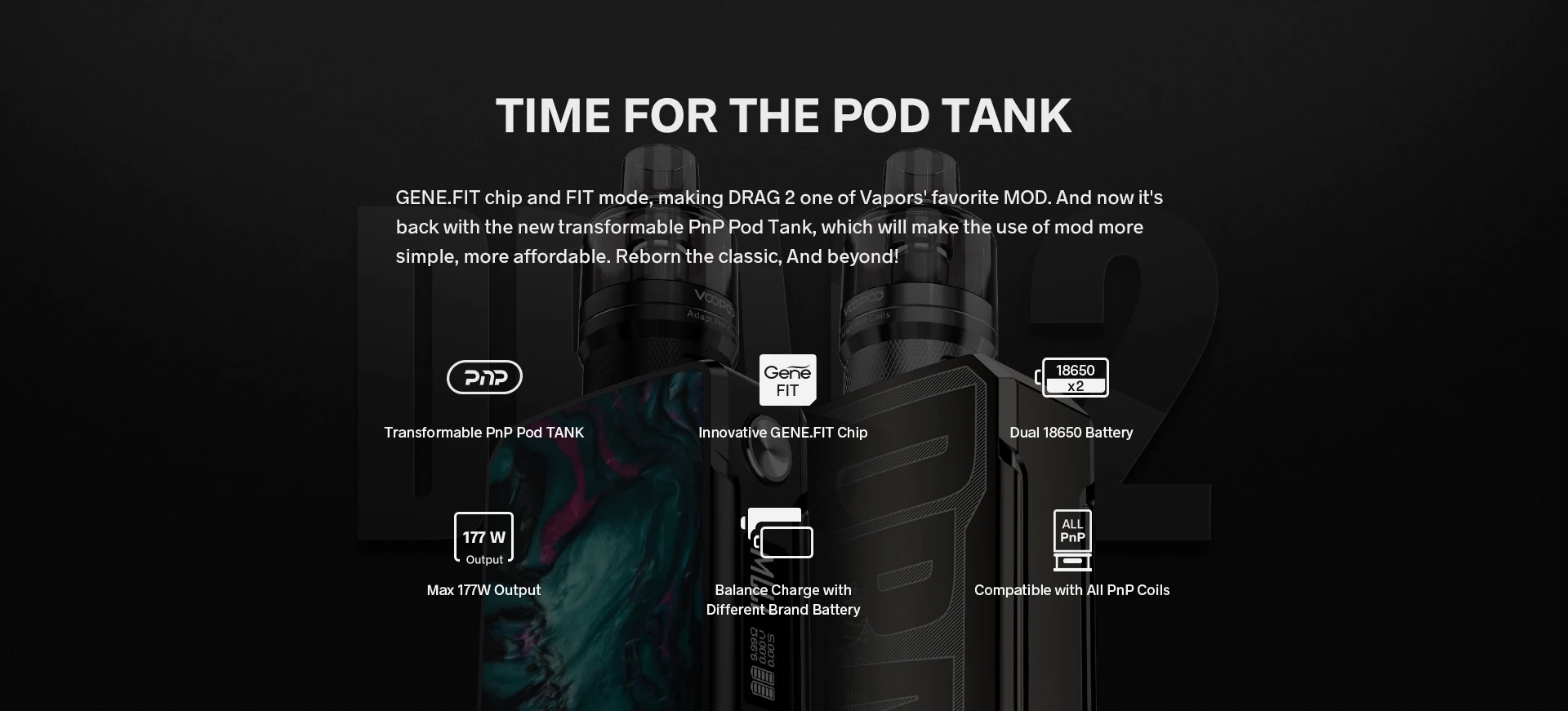 Трансформируемый PnP Pod бак Инновационный GENE.FIT чип Максимальная мощность 177 Вт Баланс заряда с различными брендами батареи Совместим со всеми функциями PnP CoilsFeature