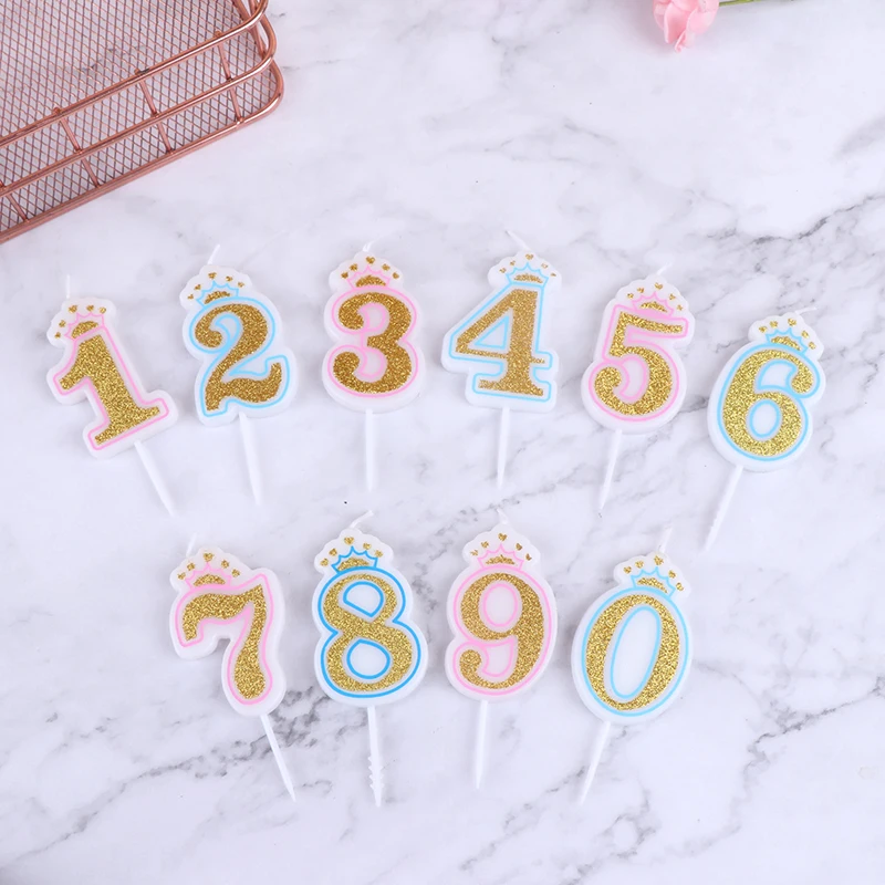 Свечи для дня рождения с цифрой 0-9, золотистые и Серебристые свечи для дня рождения, украшения для детской вечеринки