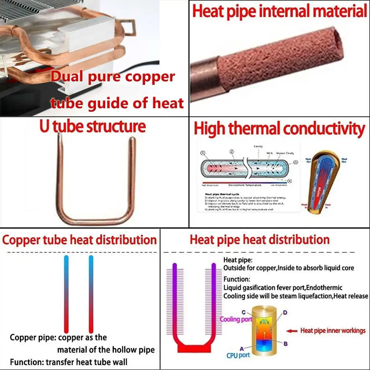 6. 2 U-образных Спеченных порошковых тепловых трубки быстро нагревают процессор, чтобы защитить его от перегрева, а двухбашенные теплоотводы обеспечивают превосходную производительность охлаждения