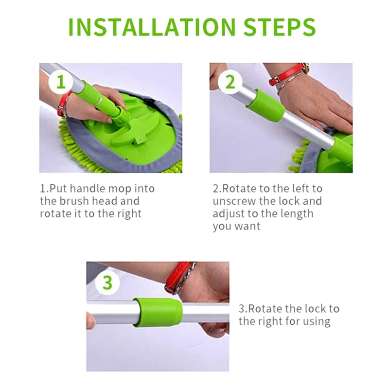Прекратите напрягать спину: Эта щетка для мытья автомобиля из микрофибры, легкая конструкция из алюминиевого сплава, удлиняется на 44,5 дюйма, а также обеспечивает легкий угол очистки на 180 градусов. Помогая вам очистить различную высоту и степень места, перчатки дизайн швабры головы убедитесь, что легко обменять швабры.