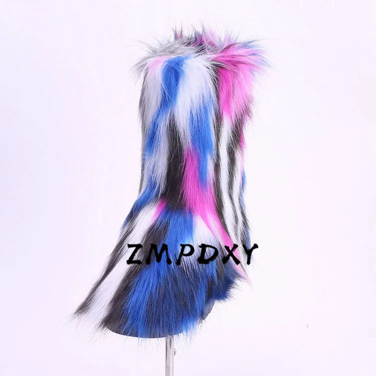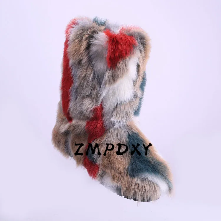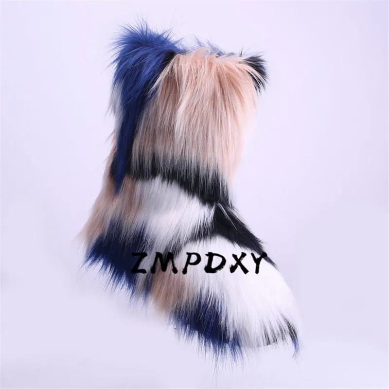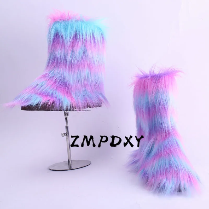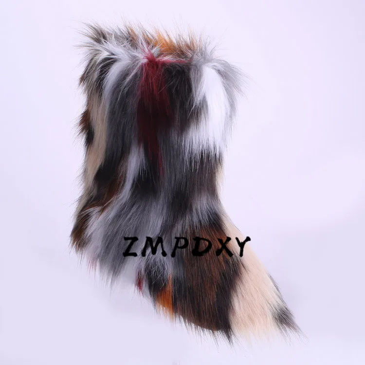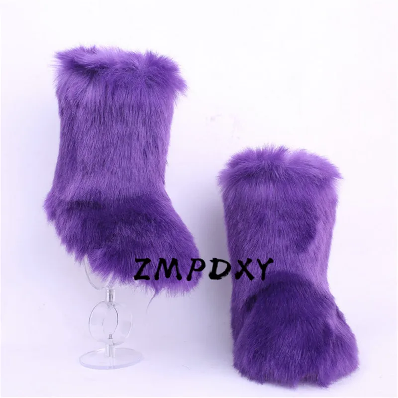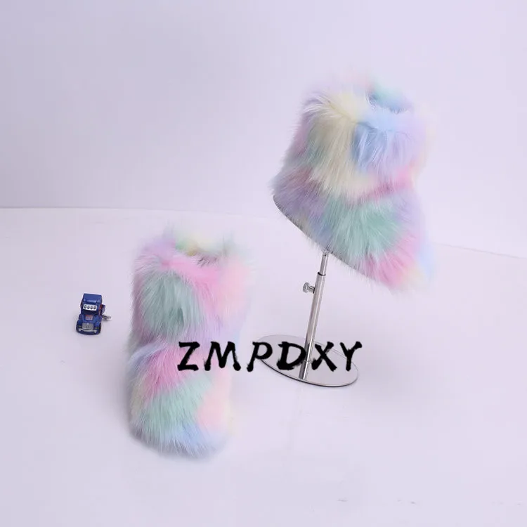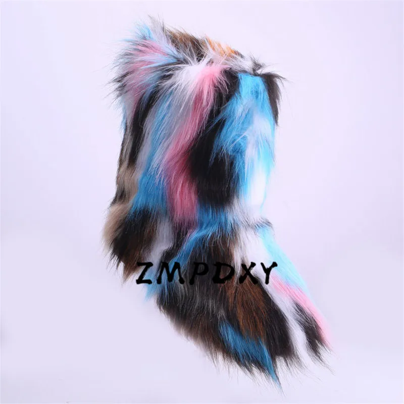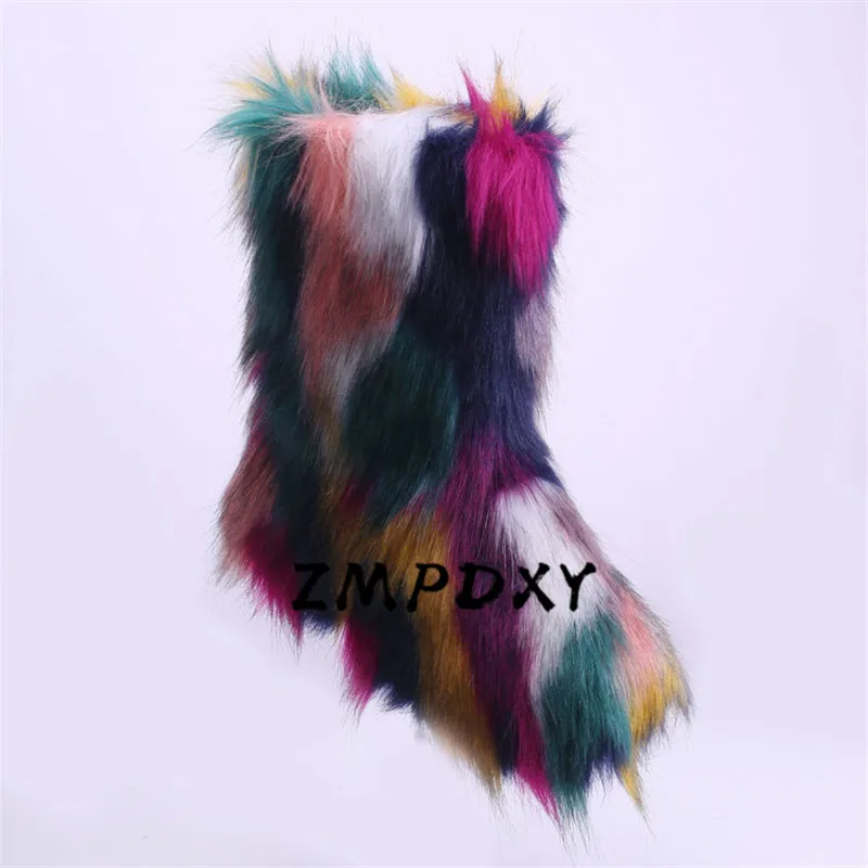 Женская пушистая хлопковая обувь; Женские Зимние непромокаемые высокие зимние сапоги; Женские меховые ботильоны; Разноцветные меховые сапоги для девочек; Botas Mujer
