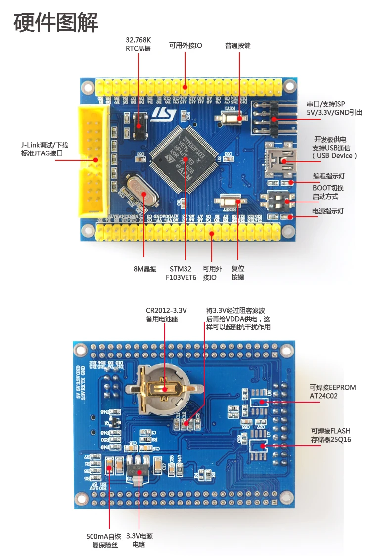 1. Чип-это совершенно новый и оригинальный STM32F103VET6,ForF103Chips с большинством серий ресурсов, с 80 GPIO/512K FLASH/64K SRAM.