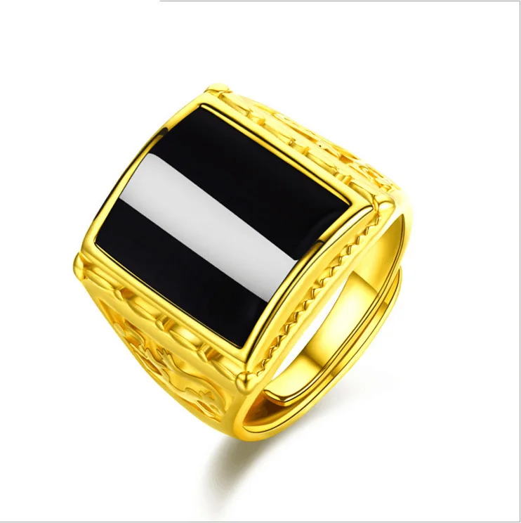 24 К золото заполнено не выцветает навсегда ювелирные изделия натуральный нефрит обсидиан кольцо для женщин Anillos De Bizuteria нефрит Anillos Mujer драгоценный камень