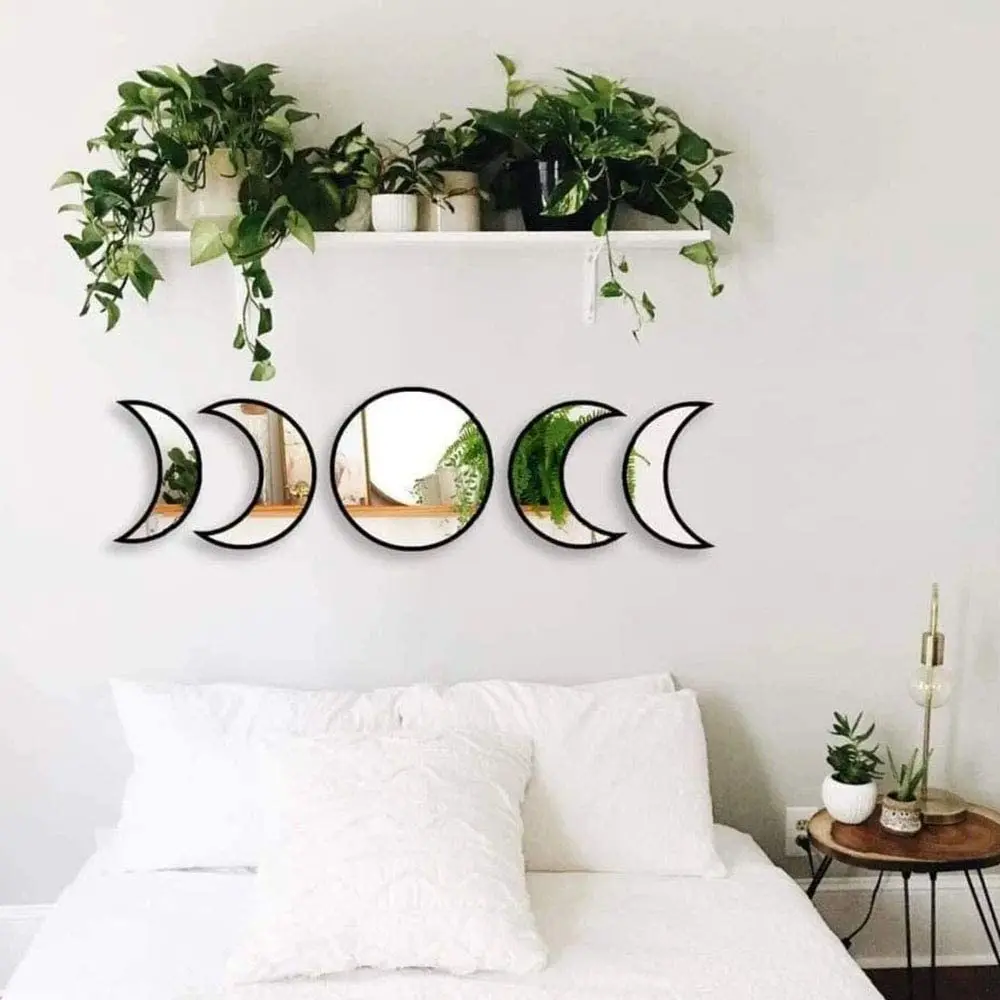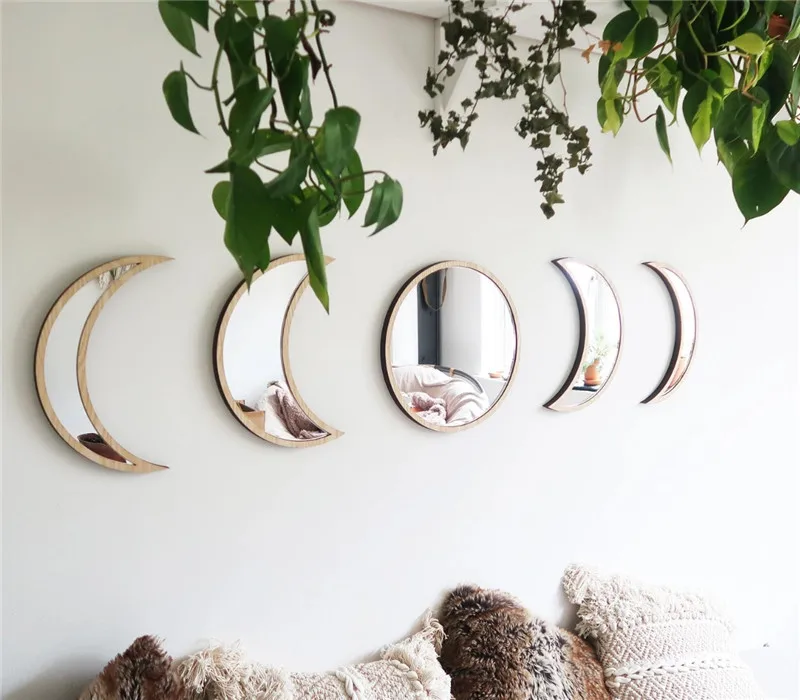 1. Эти зеркала являются прекрасным дополнением к любой комнате для влюбленных в Луну и являются отличным духовным декором для дома! Они легко отказов светильник вокруг и сделают ваш дом чувствовать себя более светильник и просторные nuosunny 2. Они сделаны из дерева, и они готовы повесить на стену вместе с шаблоном, помогая вам поместить их, чтобы они были прямыми. 3. Луны изготовлены из прочного безопасного зеркала, что делает его идеальным для отправки. Он был окрашен в черный, розовый, белый цвет и готов повесить на палочку Посылка: 3 шт./5 шт.