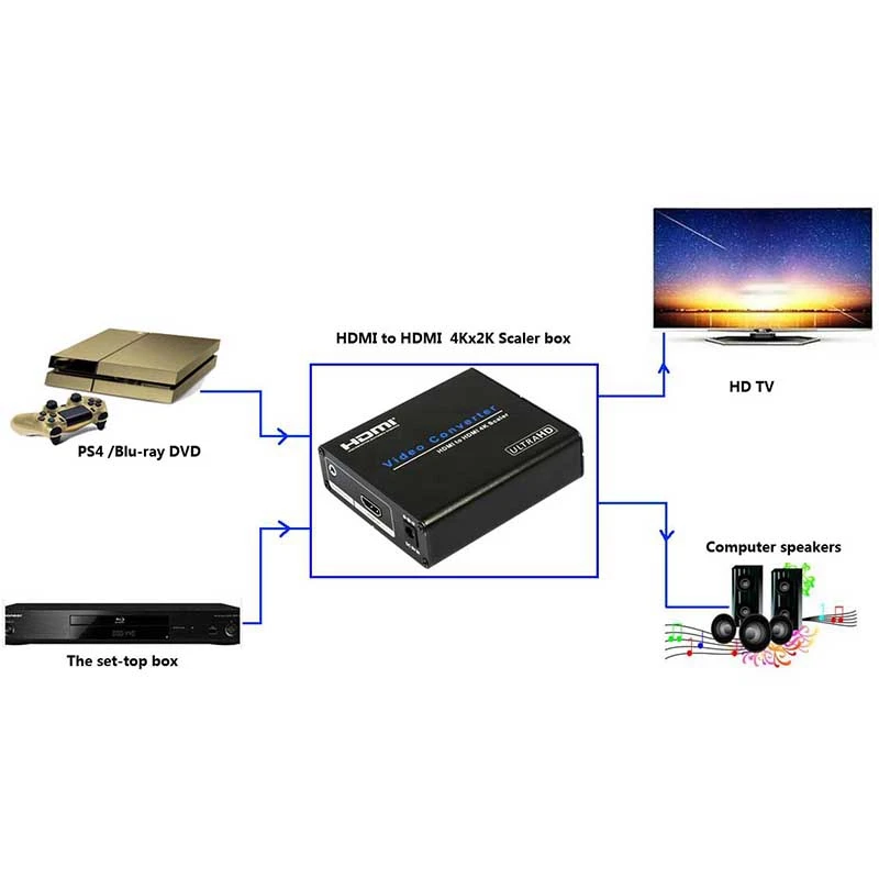 HDMI к HDMI 4K скейлер усилитель HDMI вниз/Upscaler конвертер с зумом Aux o 3D 1080P для PS4 PS3 HD TV US Plug