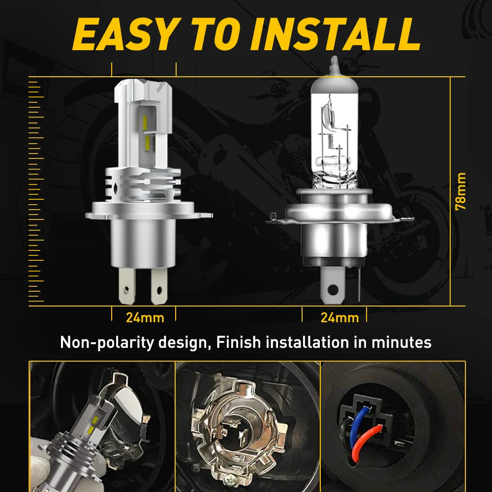 AUXITO 1 шт. H4 HB3 светильник для головы мотоцикла светильник дальнего/ближнего света CSP светодиодный чип 1500LM 6000K белый светильник для мотоцикла