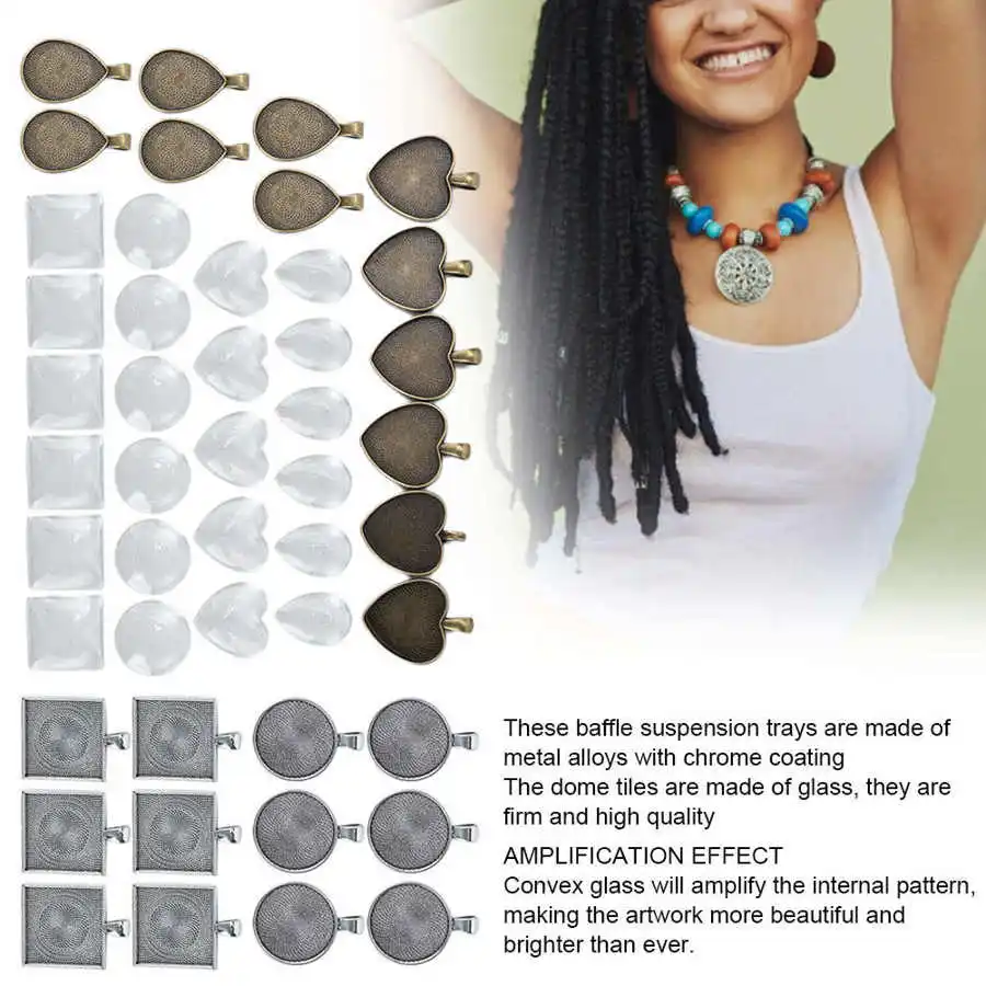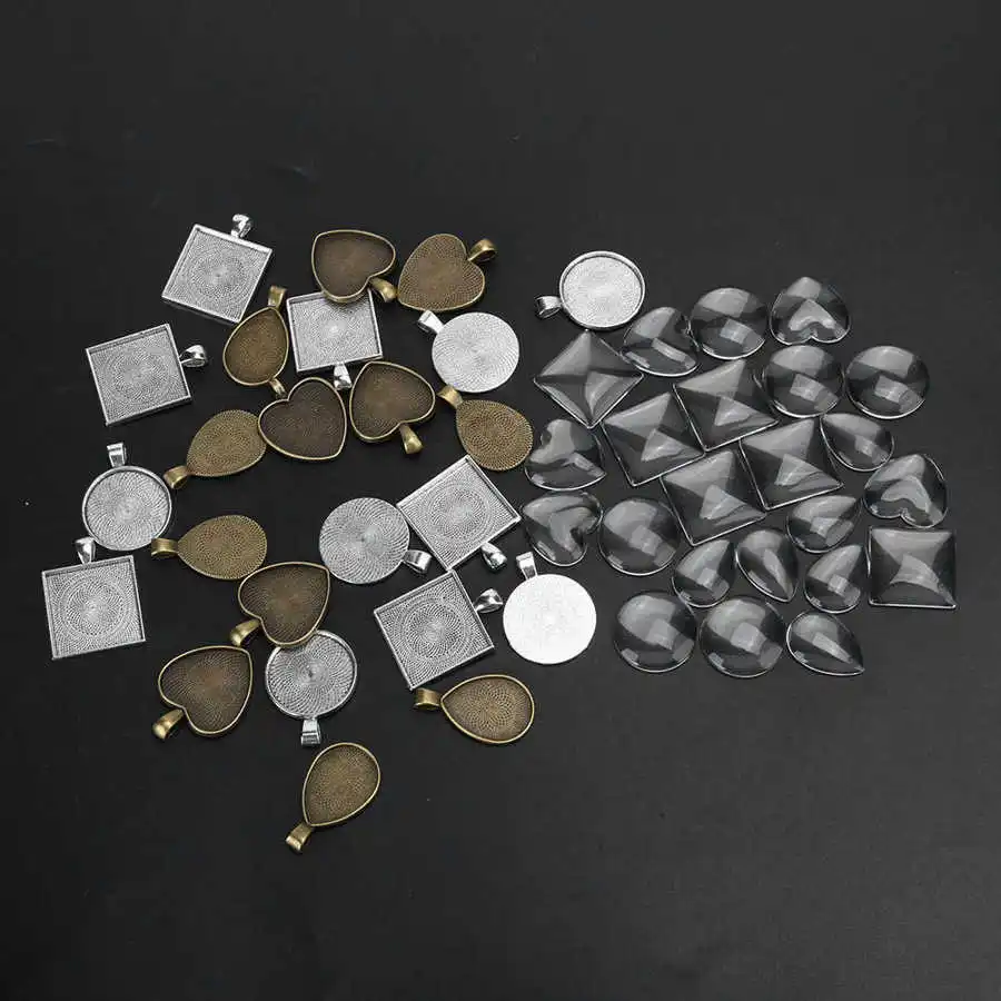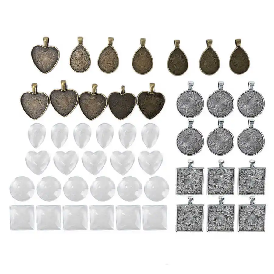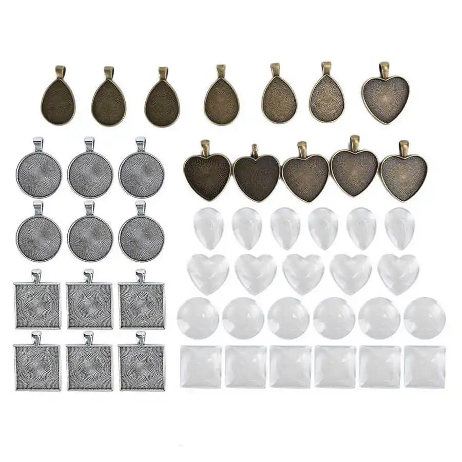 6 x Античный Серебристый Круглый основа подвески 6 x бронзовое сердце-образный основа подвески 6 x основа подвески в форме капли 6 x античная серебряная квадратная основа подвески 6 x круглый стеклянный патч 6 x стеклянная нашивка в форме сердца 6 x стеклянный пластырь в форме капли 6 х квадратный стеклянный патч