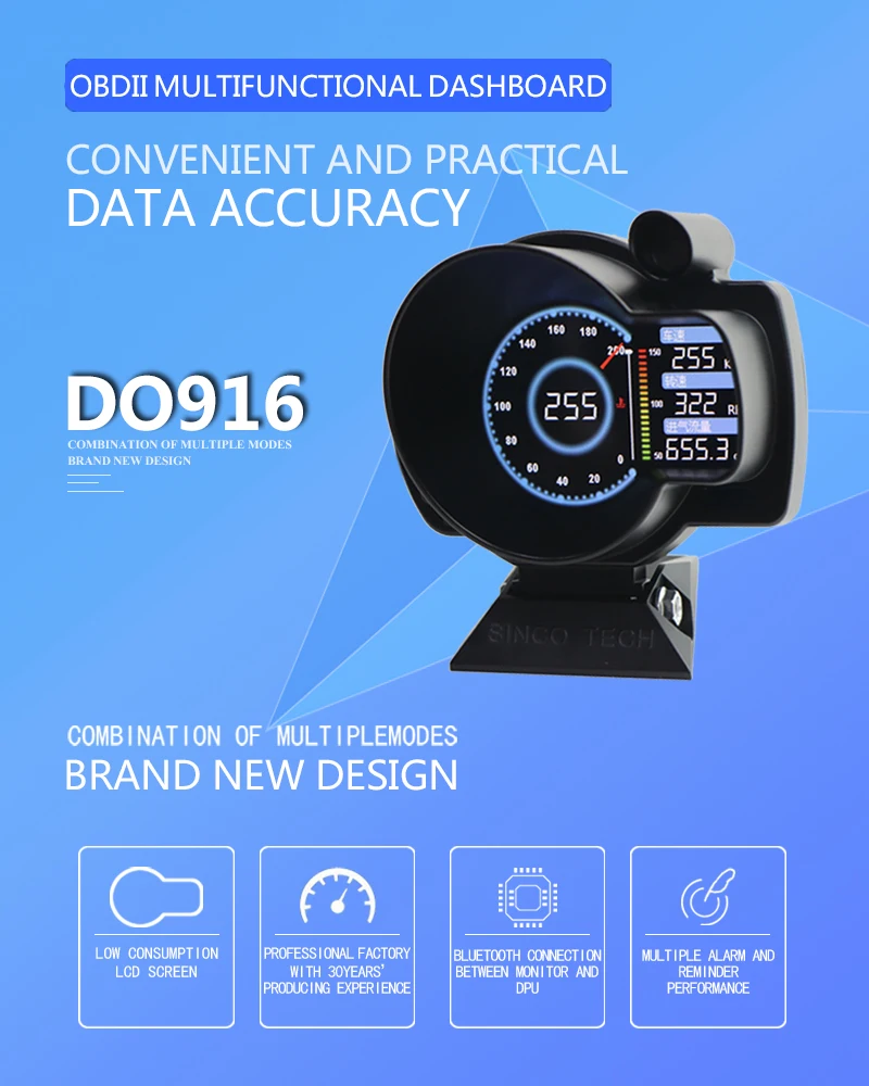 Многофункциональный цифровой измеритель OBD2 с предупреждающим светильник об/мин уровень топлива скорость воды Температура Напряжение Tech Dash gauge