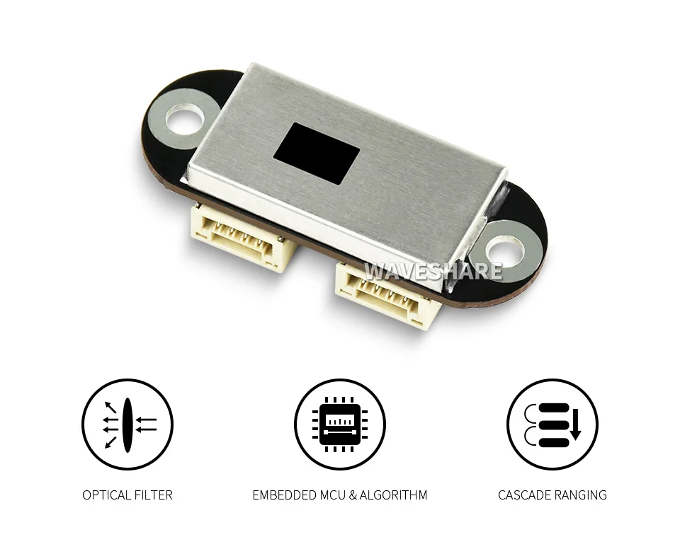 Лазерный дальномер TOFВЛазерный дальномер TOFЭто TOF на основе (время полета) Лазерный диапазон датчика со встроенным MCU и начиная алгоритм, которая способна предлагать до 5 м Диапазон измерения, ± 1,5 Точность см, И разрешение 1 мм. Он поддерживает каскад, начиная с UART или CAN bus, настраиваемый вывод данных, включая активный выход и выход запроса.