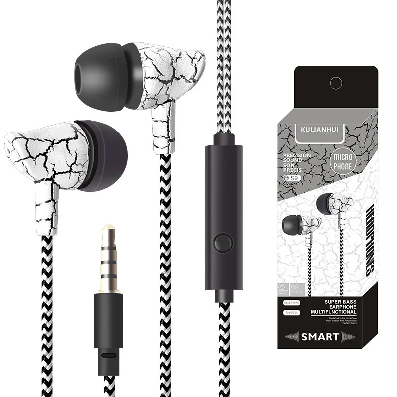 Гарнитура с плетением трещин, проводные цветные наушники с микрофоном, супер бас, 3,5 мм, проводное управление, супер бас