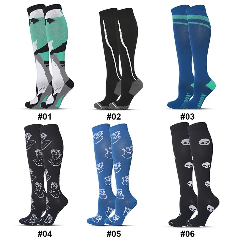 Компрессионные носки для женщин и мужчин, защитные гольфы, Высокие гольфы с принтом, чулочно-носочные изделия, одежда для велоспорта, бега, спортивная одежда