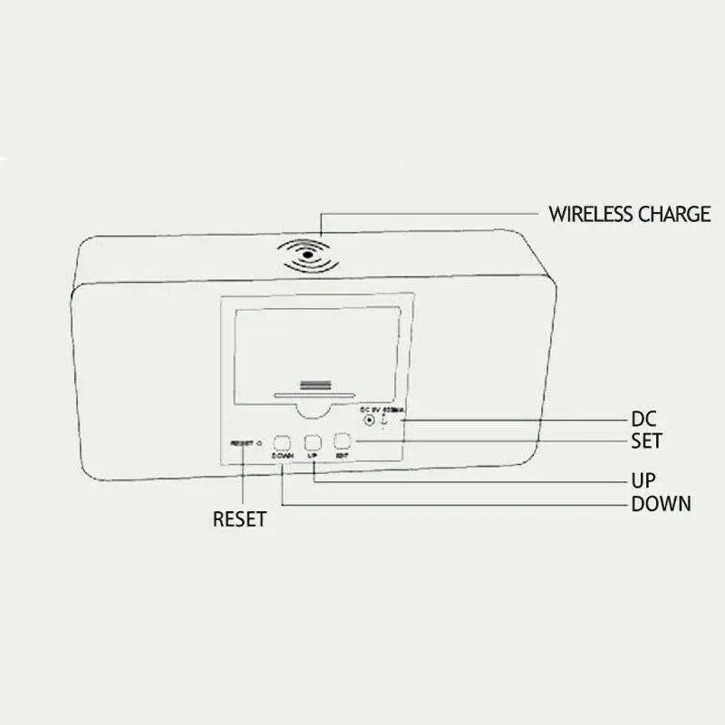 Беспроводная зарядка QI: Просто поместите телефон поверх часов, и itd начнет зарядку автоматически. Зарядка происходит только при питании от USB кабеля, не заряжается при питании от батарей. Обратите внимание, что телефоны с поддерживающим кольцом на задней панели не будут полностью заряжены, пожалуйста, удалите поддерживающее кольцо для зарядки.