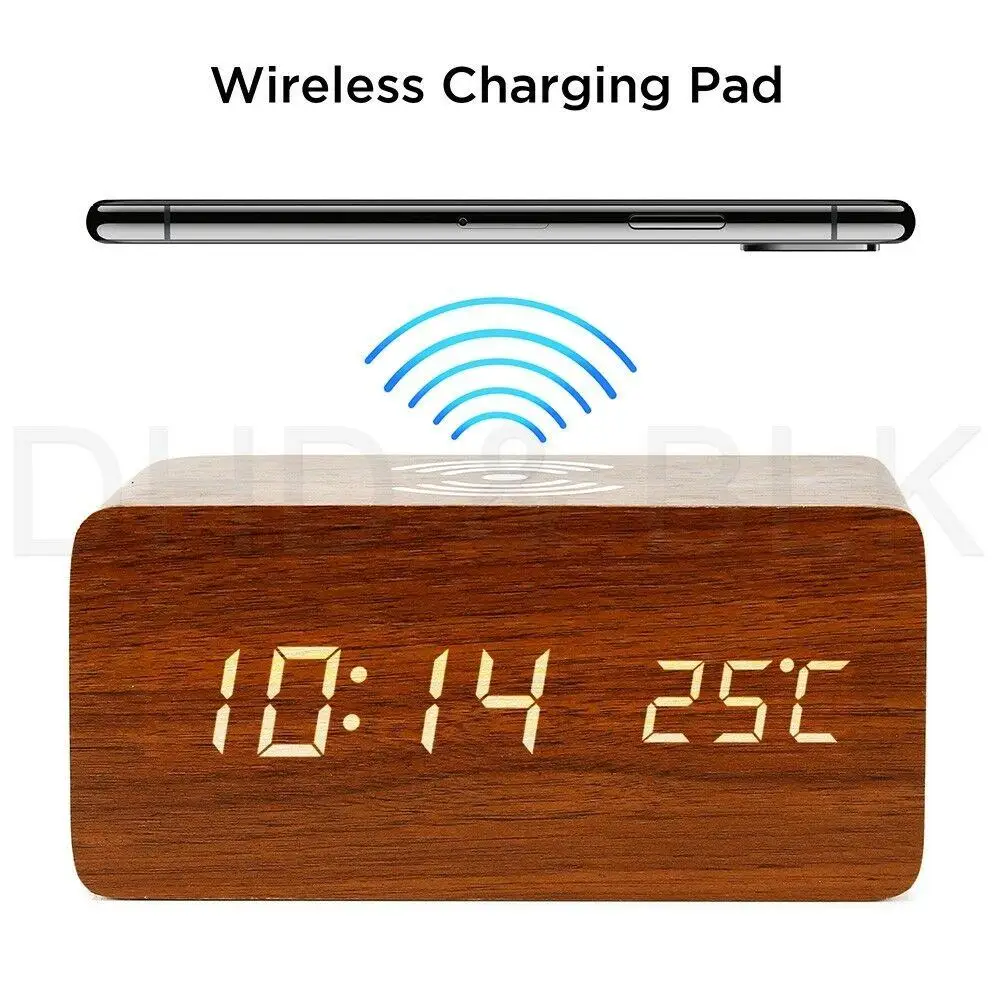 Описание товара: Добавьте современный вид в вашу спальню, гостиная или офис с этим гладким и элегантным голосовым управлением, экологически чистые часы-будильник, которые также могут использоваться как Беспроводное зарядное устройство Qi, которое идеально сочетается с любой современной дизайнерской офисной или домашней мебелью. Предназначен для простоты, нет кнопок или пластиковых частей на передней и боковой стороне часов. Он отображает время, дату, влажности и температуры четко с яркими и регулируемый светодиодный свет для чистую, но современный вид. Вы можете настроить до 3 будильников через несколько минут, чтобы заменить функцию повтора. И для вашего удобства, он также может быть использован в качестве беспроводного зарядного устройства Qi для совместимых моделей Samsung или iPhone, просто поместите ваш телефон в верхней части часов, и itd начать зарядку автоматически. Двойной Режим питания: может быть подключен через usb-кабель (входит в комплект) или подкреплен 4 батареями AAA (не входят в комплект).