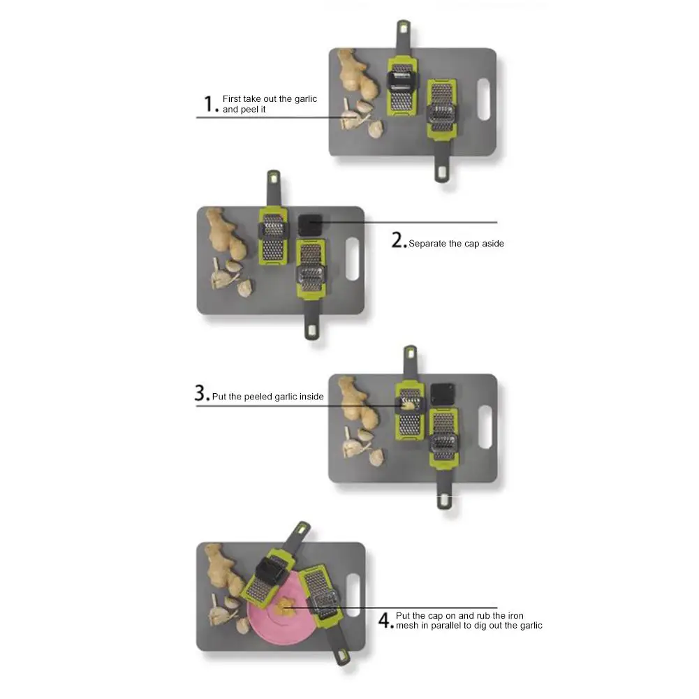1. Высококачественный Материал: TPR материал, более удобный для хранения. Простота в использовании: просто положите зубчик чеснока в корзину, выдавите его, и вы можете получить свежий чеснок с помощью одного щелчка.