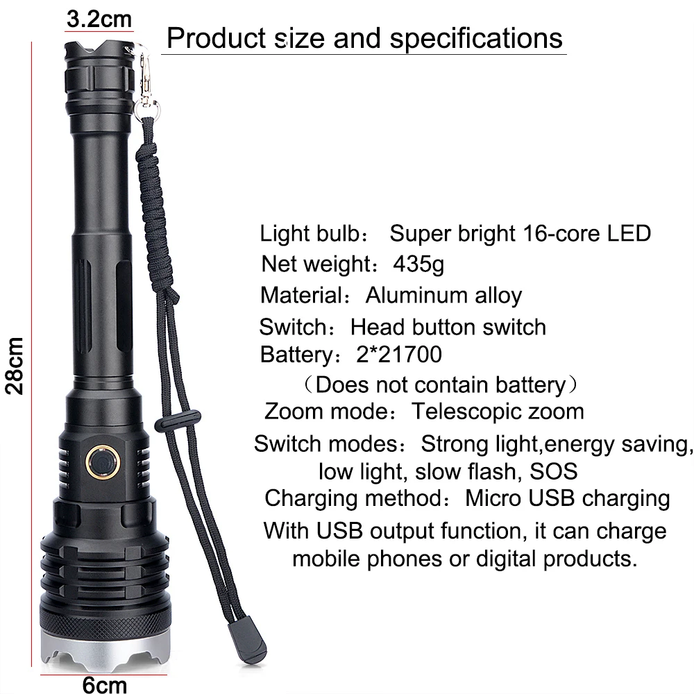 Посылка Вес: 678 г (фонарик, USB кабель, 21700 батарея, цветная коробка)