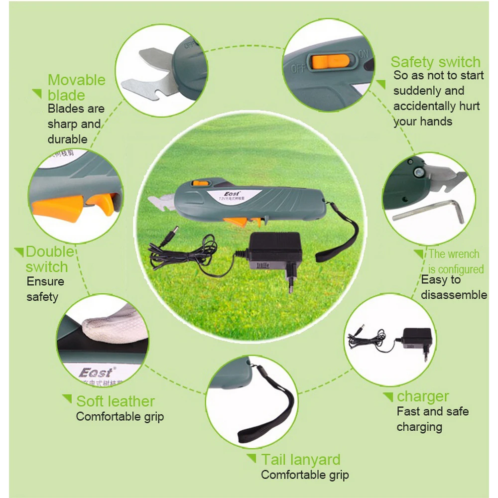 7.2в электрические секаторные ножницы, портативные секаторные ножницы, перезаряжаемая литиевая батарея, садовый секатор, секатор для веток, инструмент
