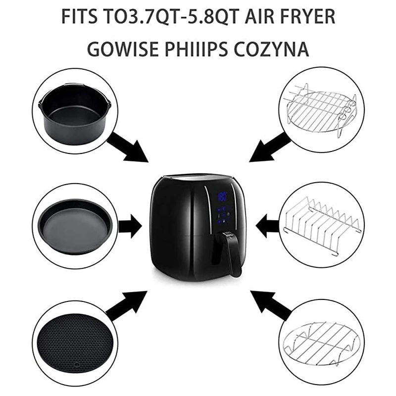 Легко чистить: все аксессуары для воздушной фритюрницы безопасны для мытья в посудомоечной машине. Вы можете просто очистить кастрюли с теплой водой, легкий и удобный для переноски в любом месте.