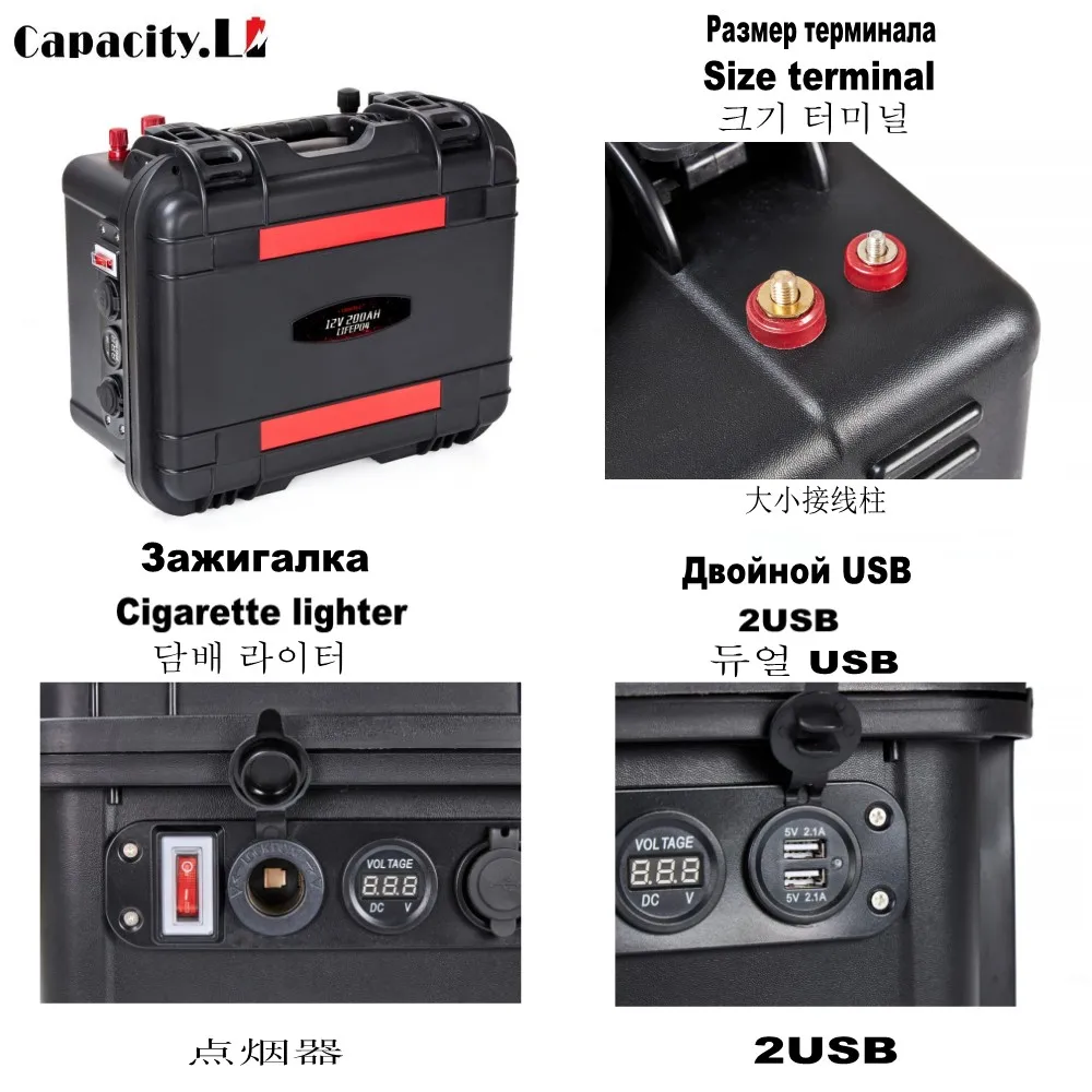 Технические параметры Номинальное напряжение 12 В Номинальная мощность: 200 ач 1. Материал батареи: батарея LiFePO4 2. Размер: 390*310*190 мм (длина, ширина и высота) 3. Вес: около 19 кг 4. Диапазон рабочего напряжения: 10 В ~ 14,6 в 5 Номинальное напряжение 12,8 В 6. Мгновенный ток разряда: ≤ 200A 7. Непрерывный ток разряда: ≤ 100A 8. Срок службы: более 3000 циклов 9. Рабочая среда: 0 ~ 45 ℃ (загрузка), -20 ~ 60 ℃ (загрузка). 10. Зарядное устройство ① Напряжение зарядки: 14,6 в ② Ток зарядки: 10 a ③ Время зарядки: около 19 часов