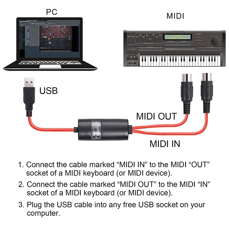 Широкая совместимость, стандартный 5-контактный MIDI кабель совместим с большинством операционных систем компьютера, таких как Windows 10, Win8, Win7, Vista, Windows XP и Mac OS X. Внимание: если ваш usb-порт Mac USB-C (Thunderbolt 3), пожалуйста, используйте оригинальное Аутентичное USB-C к адаптеру USB от производителя или MIDI-интерфейса.