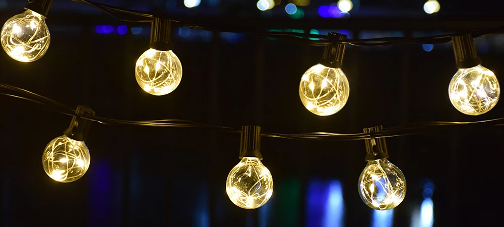 Садовый Солнечный светильник лампочка для гирлянд струнный светильник s G40 Ретро стеклянная лампа для наружного помещения светодиодный светильник на солнечных батареях 5/7.6 метров
