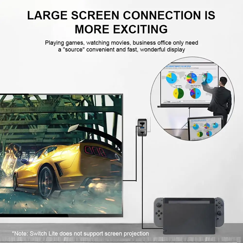 1. Интегрированный источник питания: интерфейс HDMI + интерфейс USB + интерфейс type-C + быстрая зарядка 3,1 А.Из-за ручного измерения возможны небольшие отклонения.