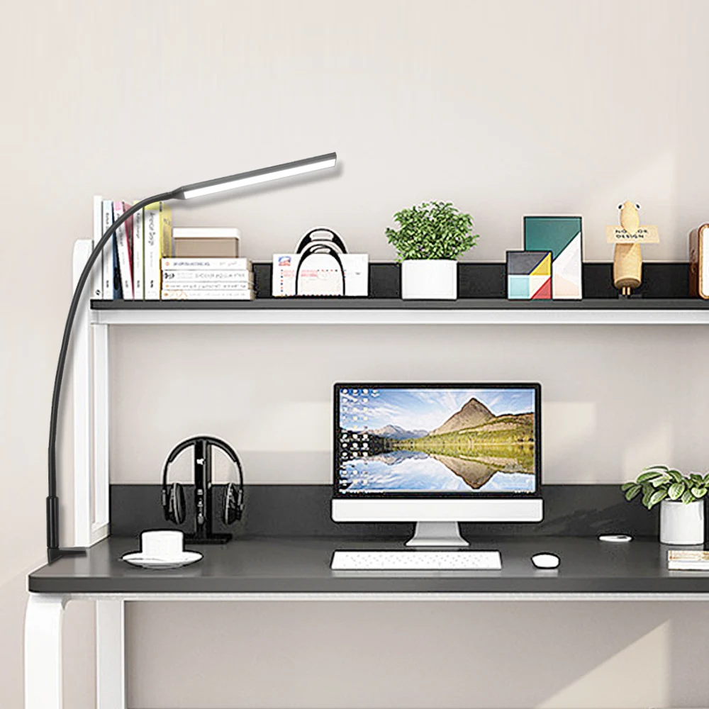 Длинная Светодиодная настольная лампа 10 Вт, Гибкая Настольная лампа с зажимом, регулируемая яркость и цветовая защита глаз для спальни, чтения, офиса