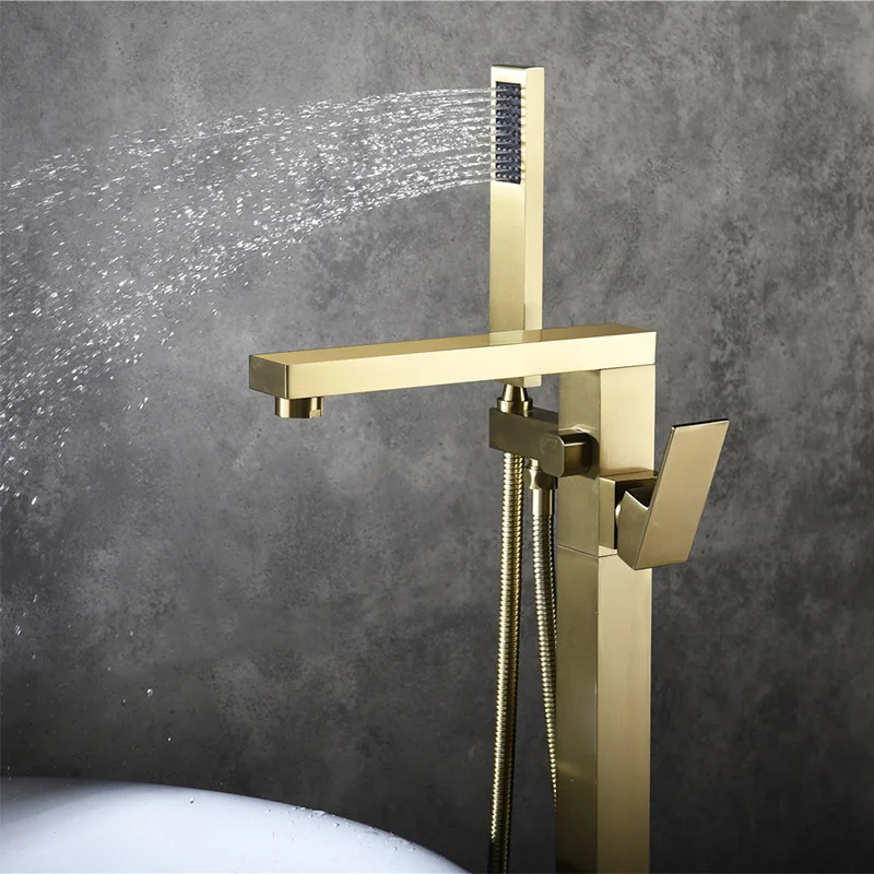 Ванная роскошная ванна кран напольное крепление ванна кран смеситель горячей и холодной воды отдельно стоящий Ванна Смеситель кран Твердый латунный набор