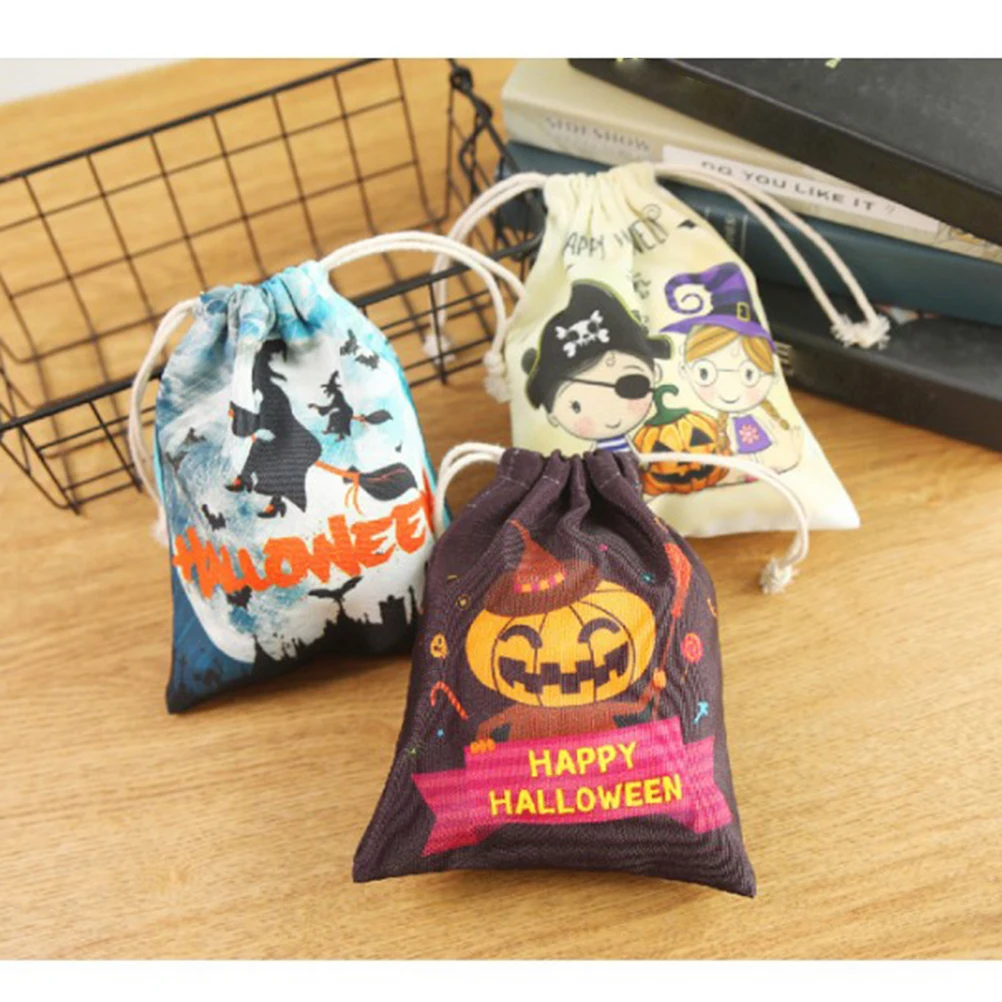 Сумка для конфет на Хэллоуин, Сумка с кулиской, карманная Подарочная сумка, переносная сумка с рисунком тыквы, ведьмы, вечерние украшения