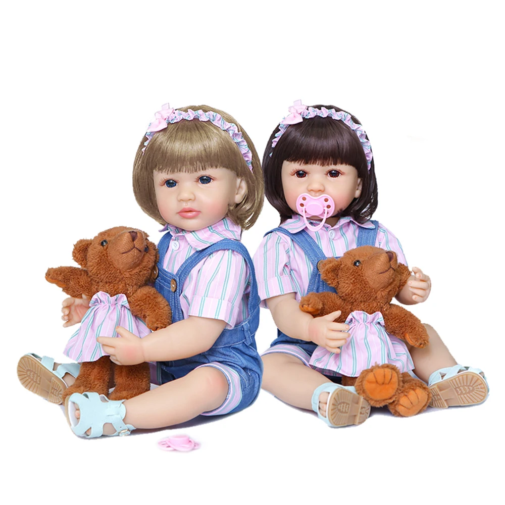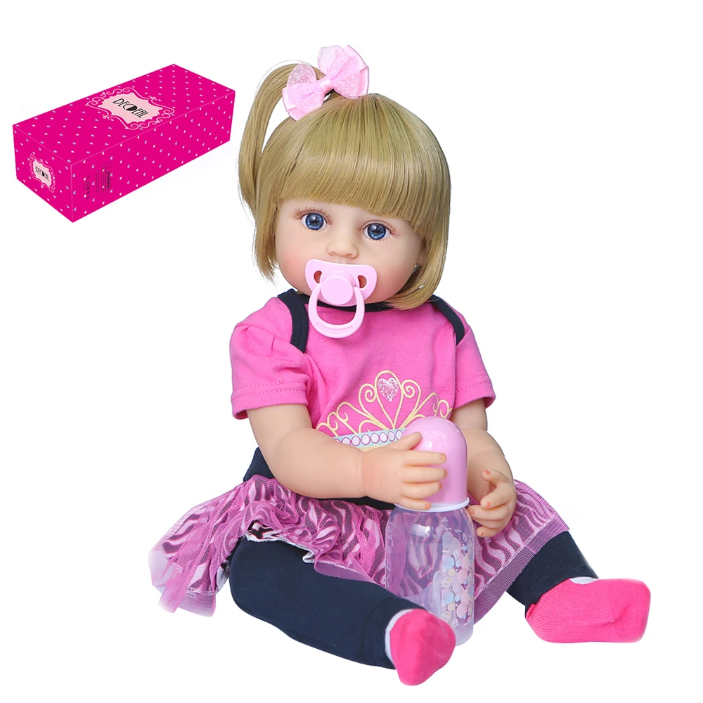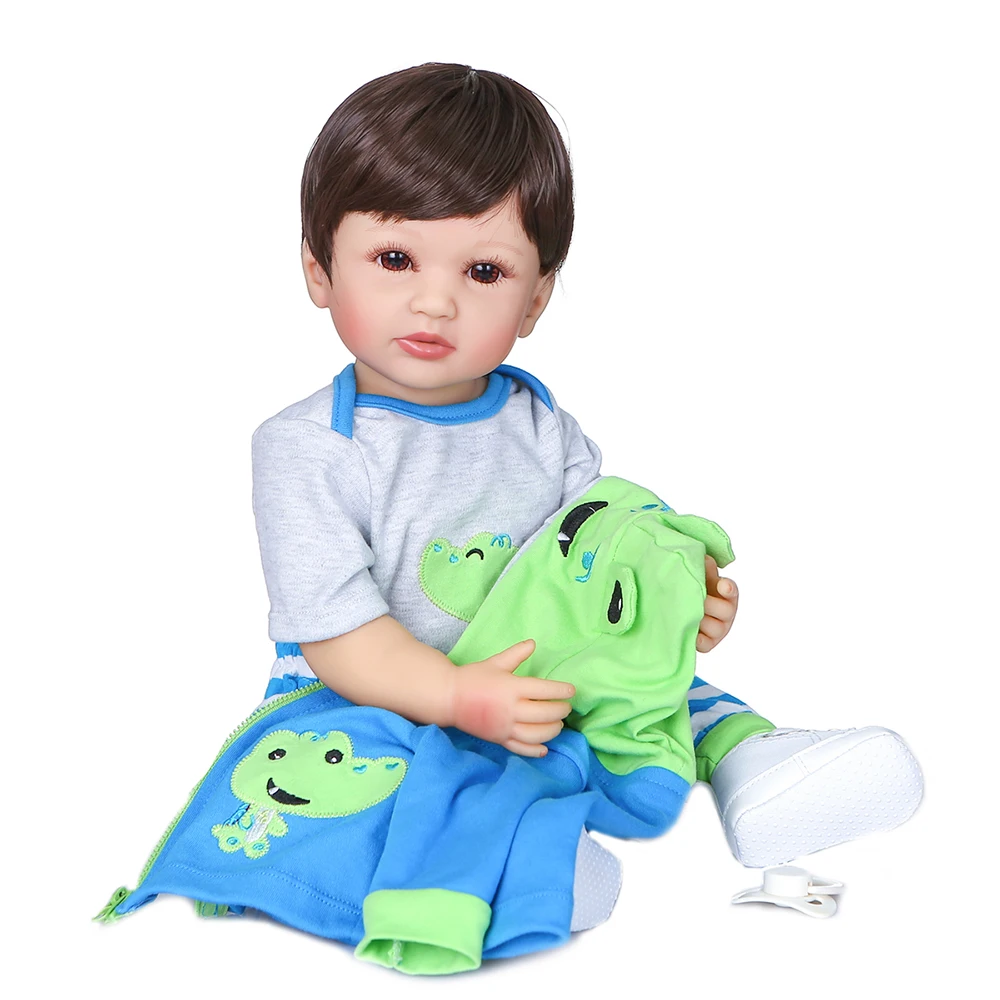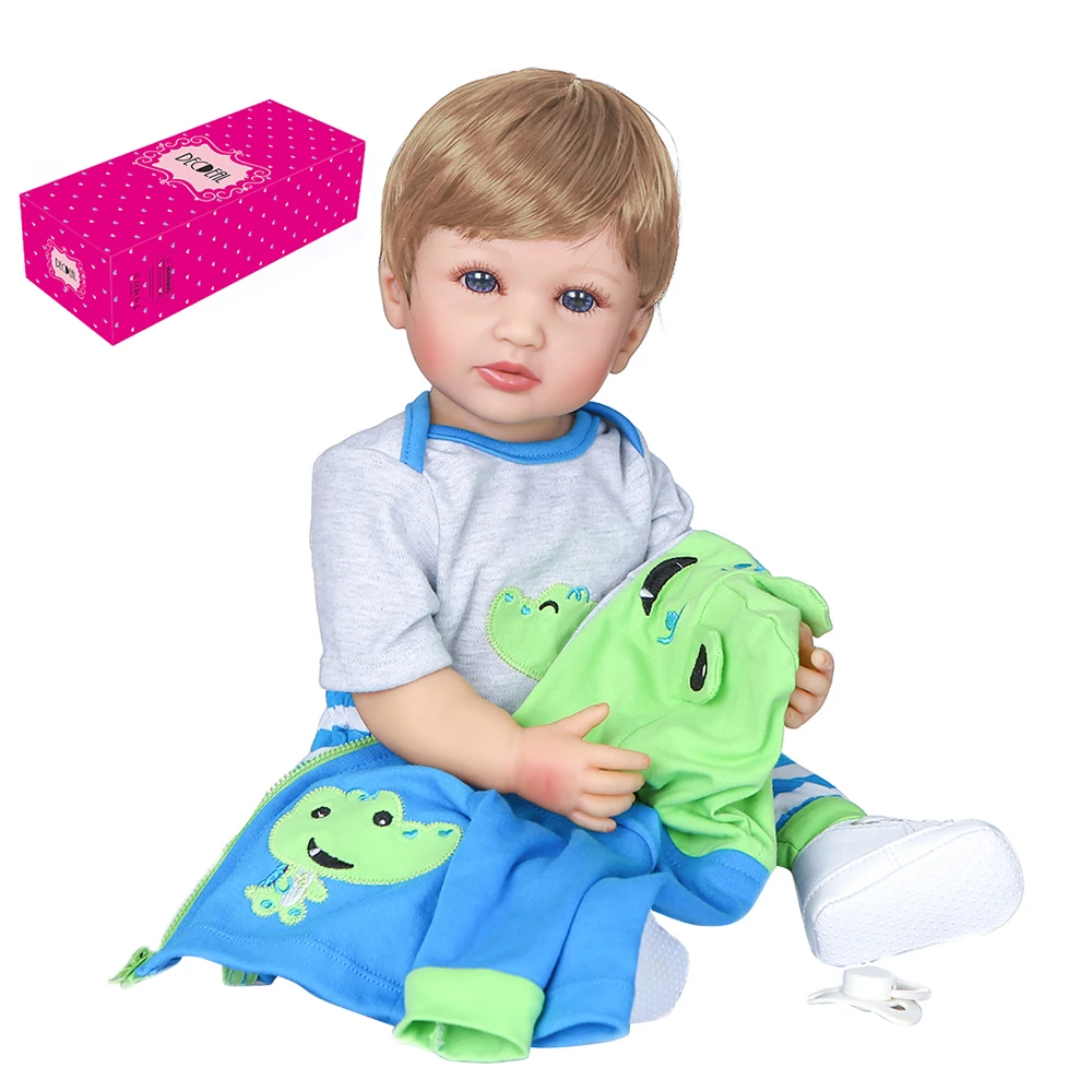 Эта кукла с полным силиконовым виниловым корпусом, в настоящей детской одежде, 22 дюйма от головы до пальца, мягкая на ощупь, как настоящий ребенок. И он может войти в воду, чтобы сопровождать ребенка, чтобы принять душ. Идеальный ребенок сопровождать игрушки, фестивали и подарки на день рождения, сбор кукол.