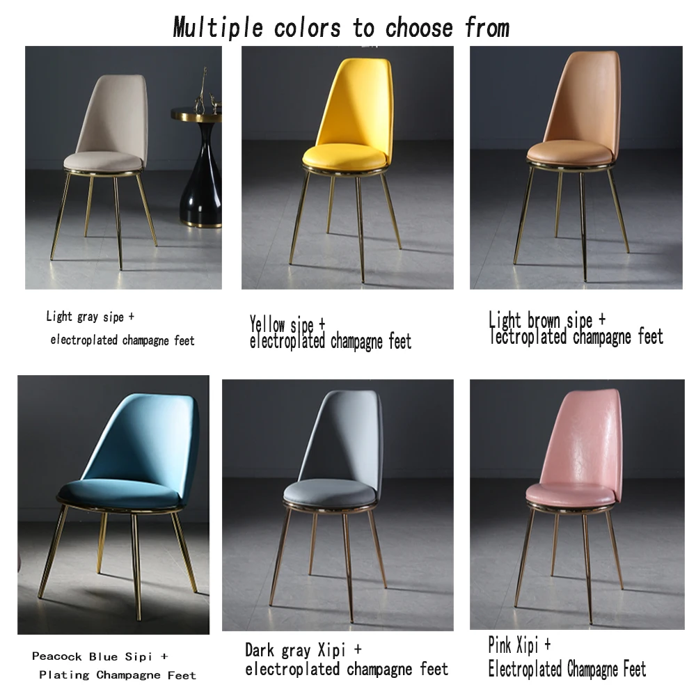 Высококачественная кожаная ткань West, водонепроницаемые и влагостойкие усиленные толстые металлические ножки, гальванический процесс окраски, ножки стула цвета шампанского благородные и элегантные Смелые ножки стула, металлическая стопа, нижняя железная работа и высококачественные крепежные винты