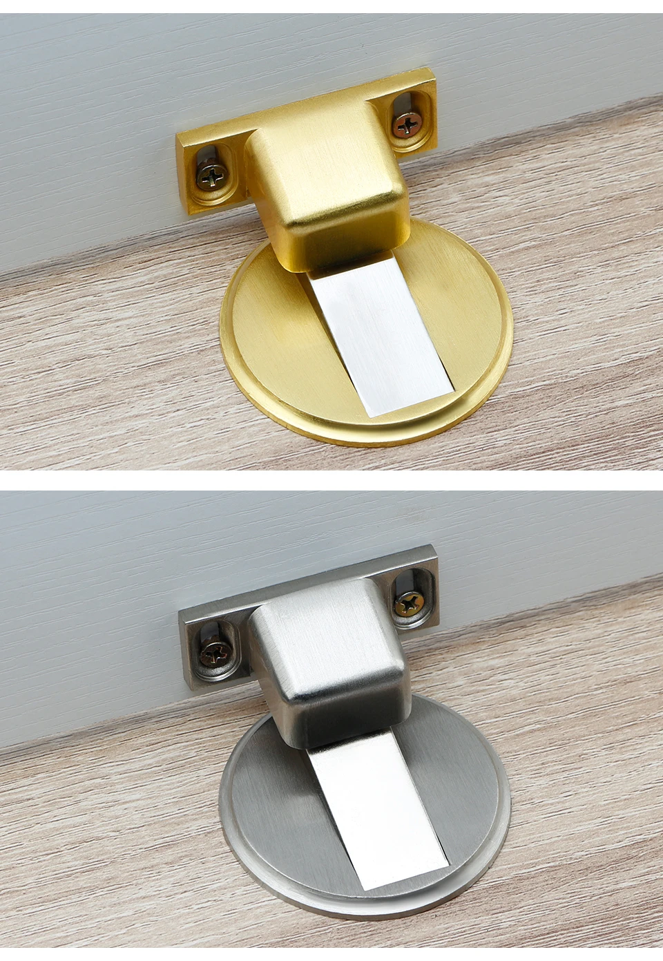 Магнитный дверной держатель состоит из двух частей: фитинга пола и дверного фитинга.