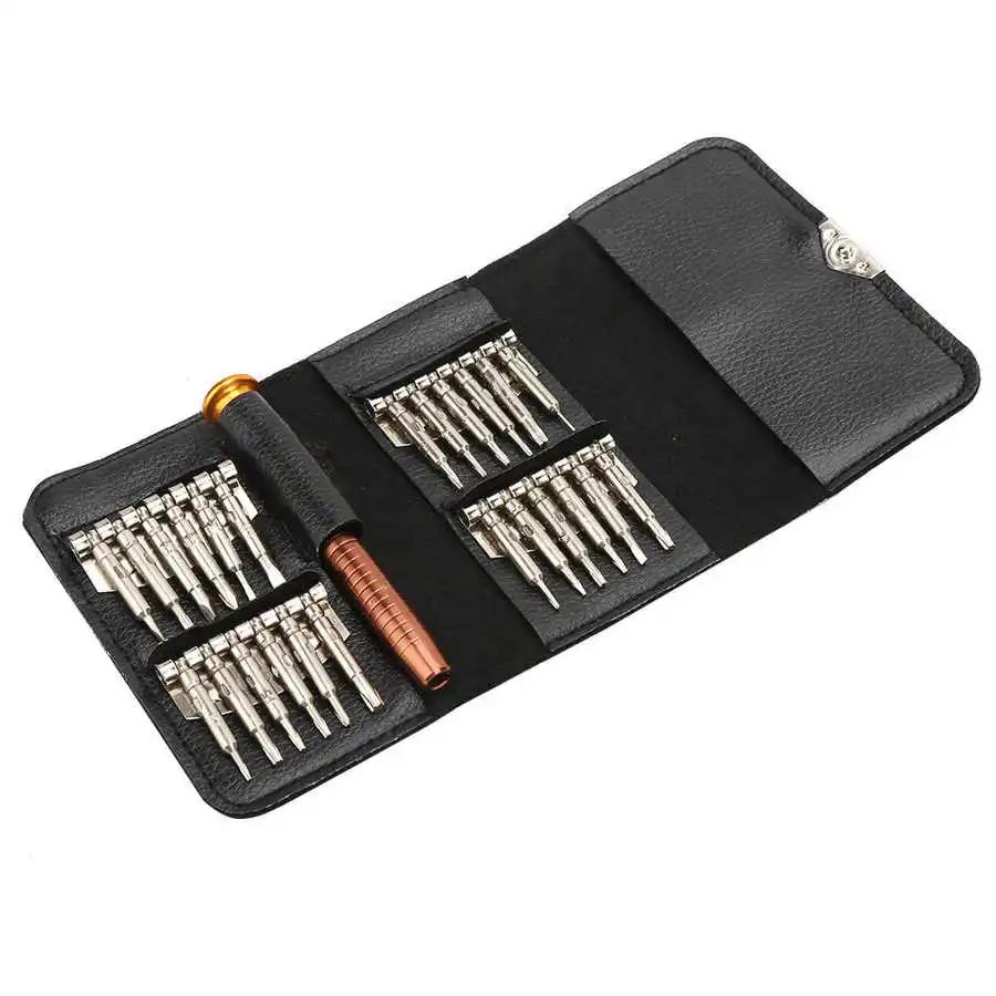 Портативная упаковка типа кошелька, встроенный драйвер, фиксированный штырь, не легко рассеивать. Высокостальная отвертка, термостойкая для повышенной твердости, долговечная в использовании. Полный набор из 24 бит, полная спецификация, может обрабатывать ремонтные работы во многих различных областях. Профессиональные аппаратные инструменты, приятное дополнение к коллекции инструментов. Подходит для большинства цифровых продуктов, таких как компьютер, мобильный телефон, камера, очки, часы и т. д.