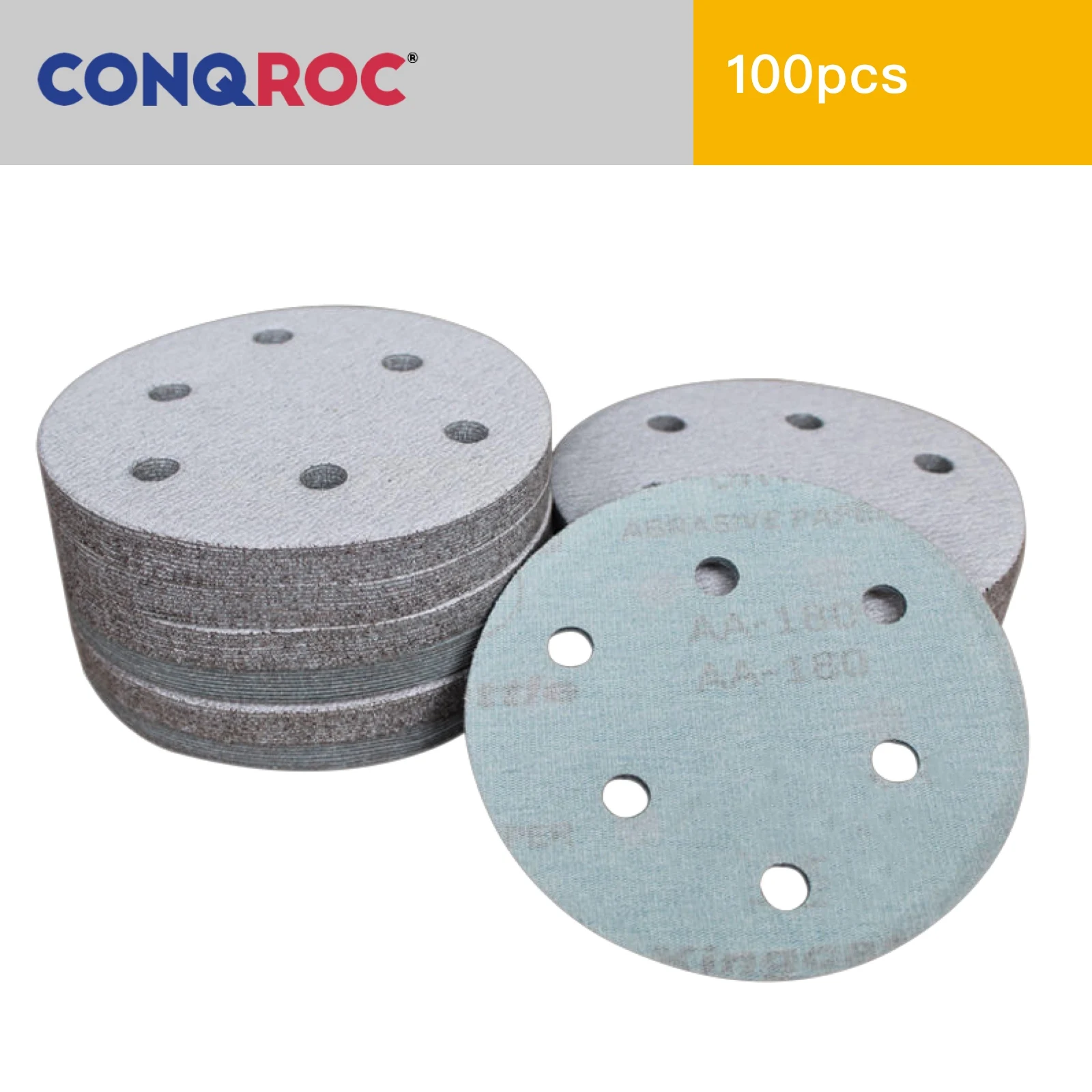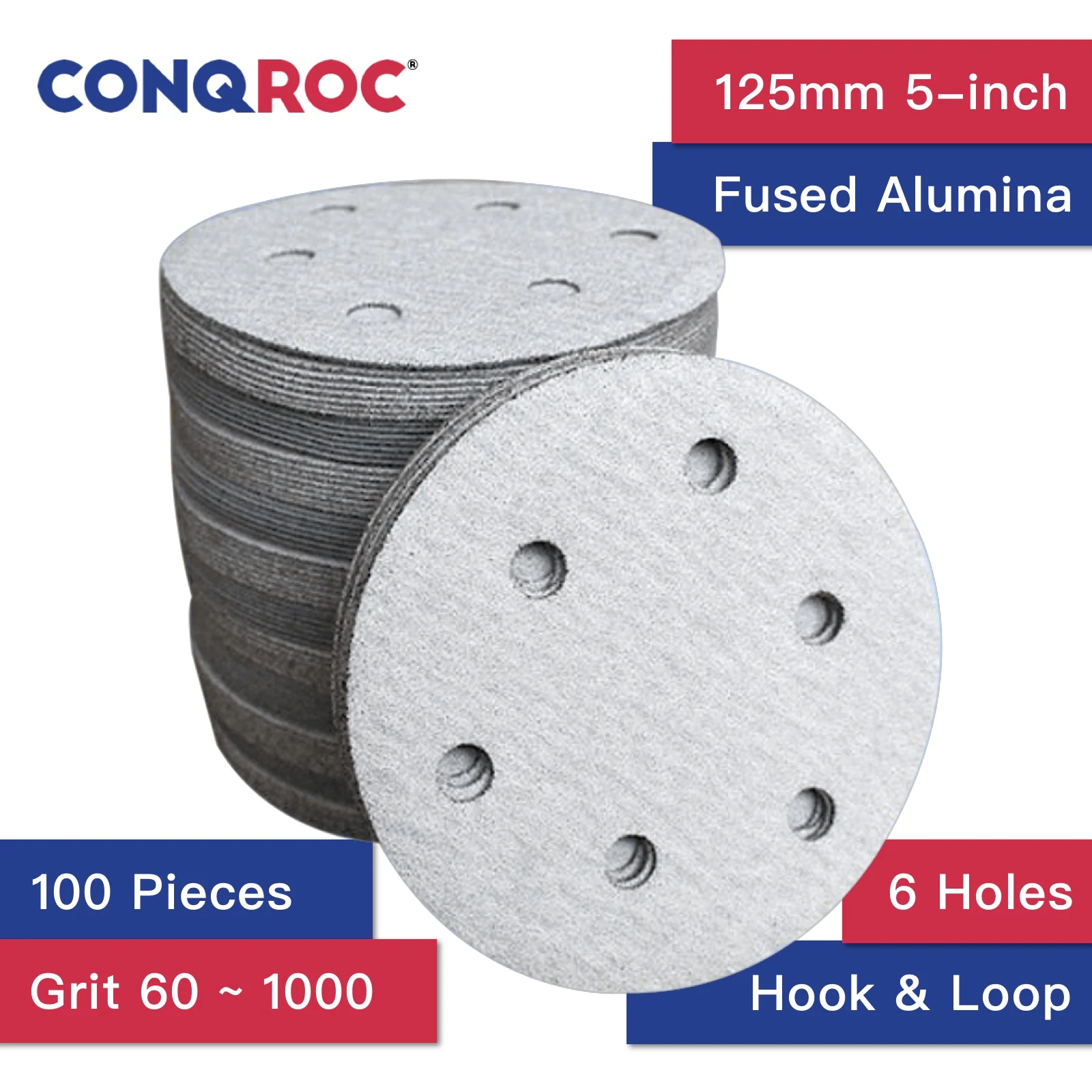 100 шт. 125 мм 5-дюймовый 6 отверстий Алюминий оксид сухой шлифовальные диски Крюк и петля белый песок Бумага диски