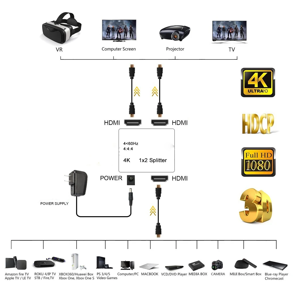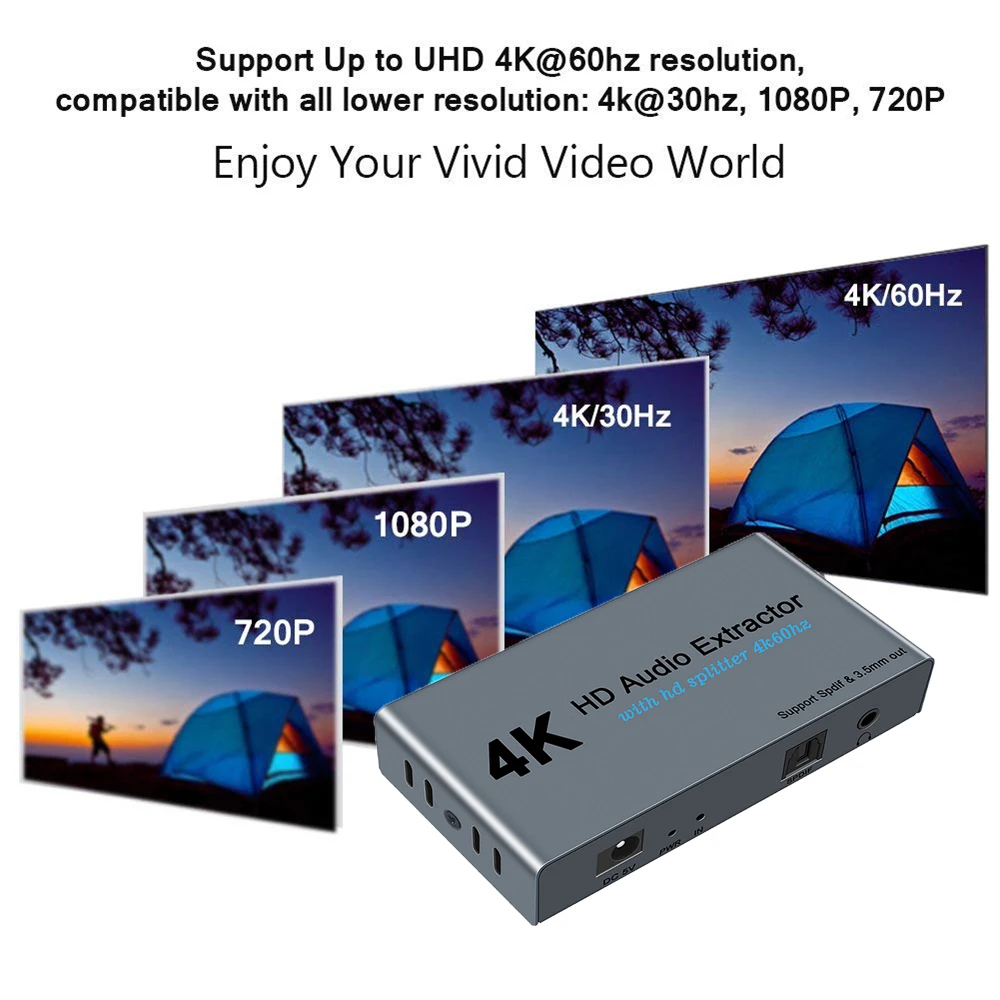 Этот новый HDMI аудио экстрактор может поддерживать 3D \ 4KX2K и он позволяет 1 HDMI вход и 2 HDMI выход подключен к 1 HD дисплей (как телевизор или проектор) И извлеките аудио в SPDIF audio out + 3,5 мм Stereo audio out. Не только для того, чтобы соответствовать идеальному изображению HDTV, но и для удовлетворения потребностей энтузиастов в аудио. Наши устройства предлагают решения для шума, пространства и безопасности, управления центром обработки данных, распространения информации, презентаций конференц-зала, школы и корпоративных условий обучения. Аудио экстрактор HDMI-HDMI Извлеките аудио в SPDIF audio out + 3,5 мм Stereo audio out. Поддержка цифрового аудио формата SPDIF: Dolby digital (AC3), DTS, LPCM и поддержка 5.1CH. Поддержка 3,5 мм аналоговый аудио Выход. 1 в 2 OUT 4K 60HZ HDMI сплиттер HDMI аудио экстрактор может поддерживать 3D \ 4KX2K и он позволяет 1 HDMI вход и 2 HDMI выход, подключенный к 1 HD дисплею.