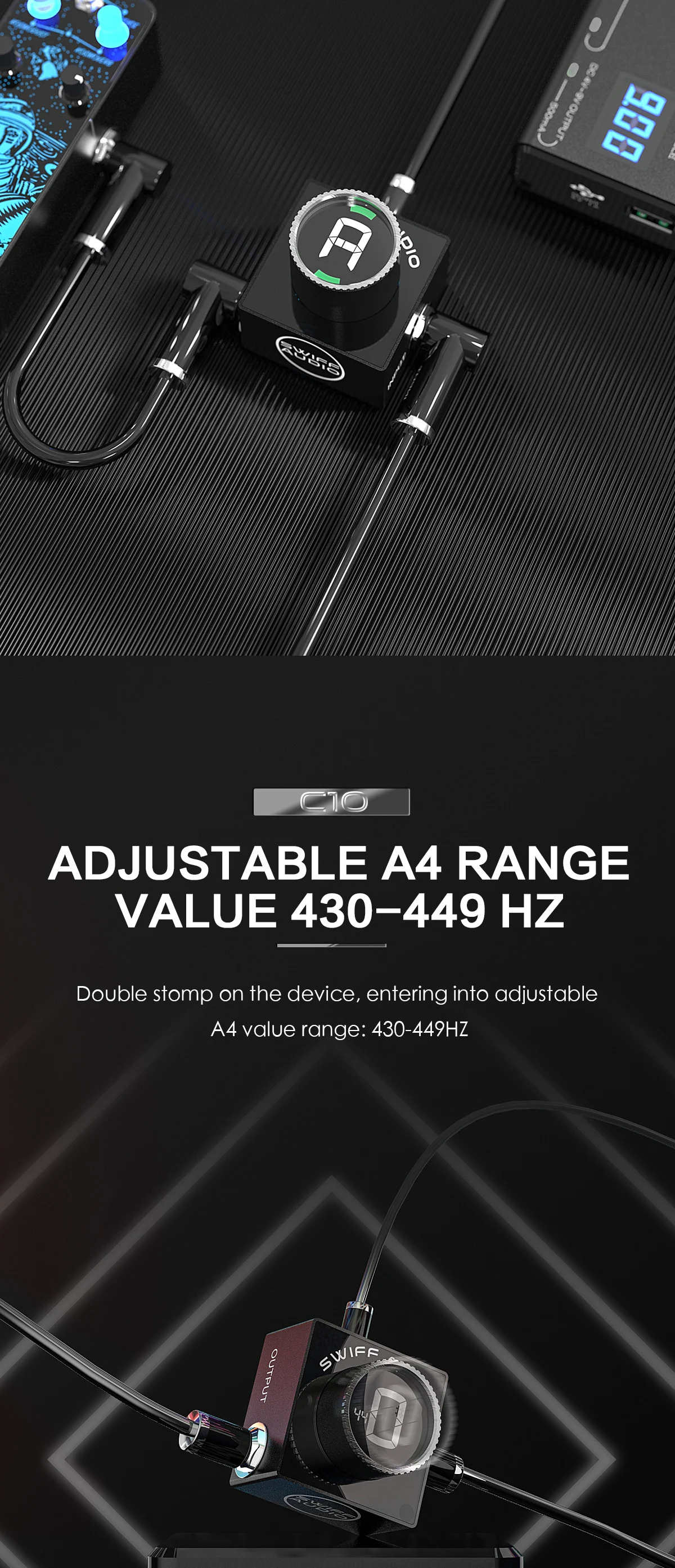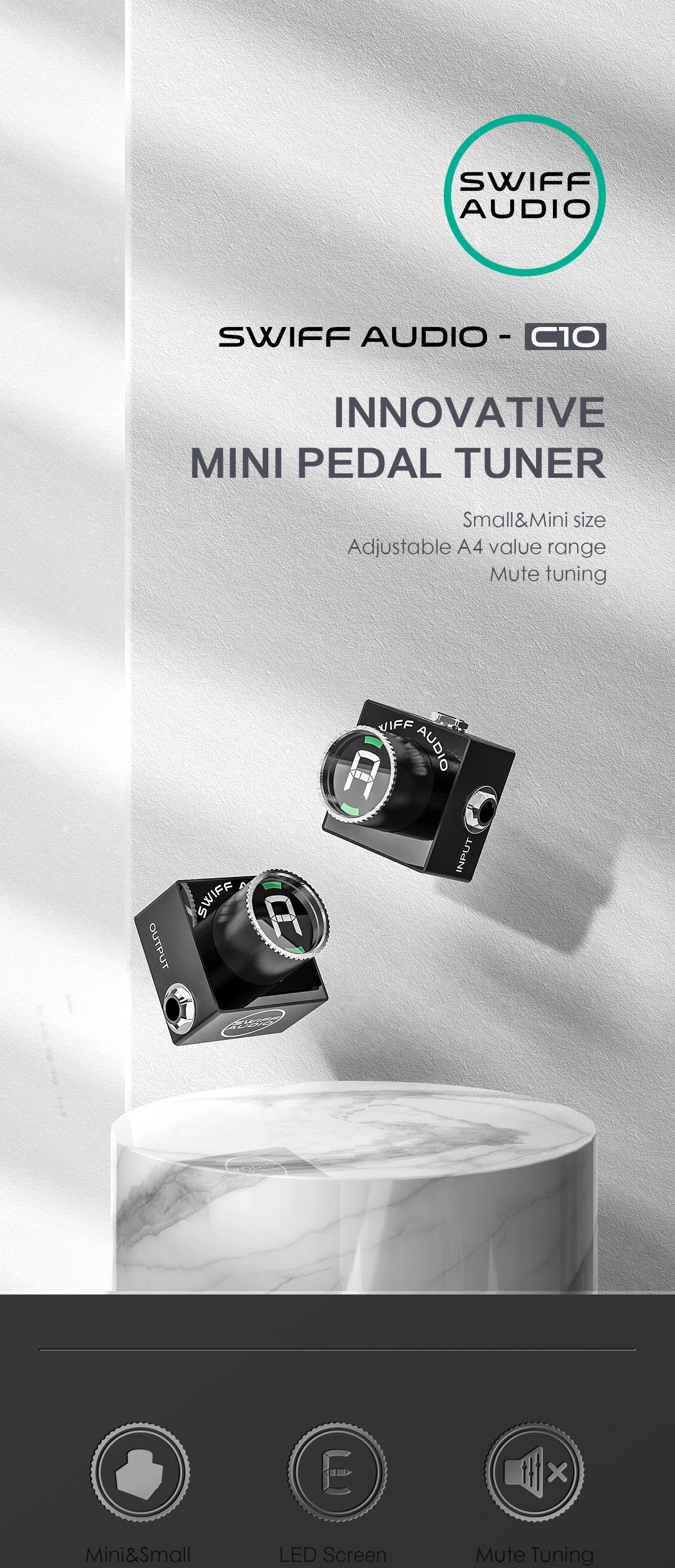 SWIFF Audio C10 мини-педаль тюнер для хроматической настройки звука HD светодиодный дисплей регулируемый диапазон А4 значение 430-449 Гц аксессуары