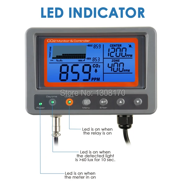 Точность:CO2 ниже 3000ppm ± 50ppm или ± 5% чтения, в зависимости от того, что больше