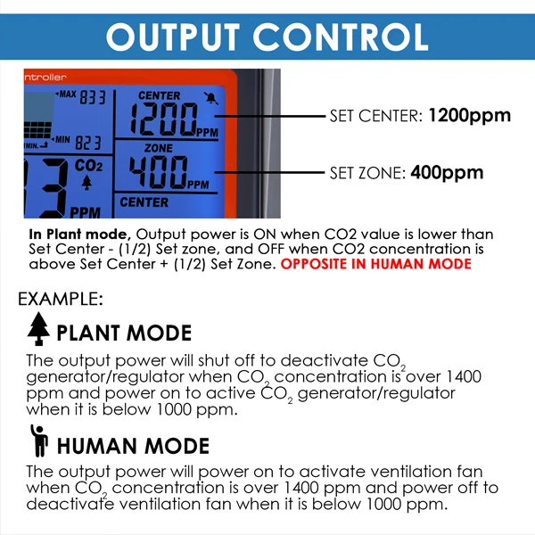 Программируемое значение зоны CO2 и ценовое значение CO2 для контроля выходной мощности ВКЛ/ВЫКЛ