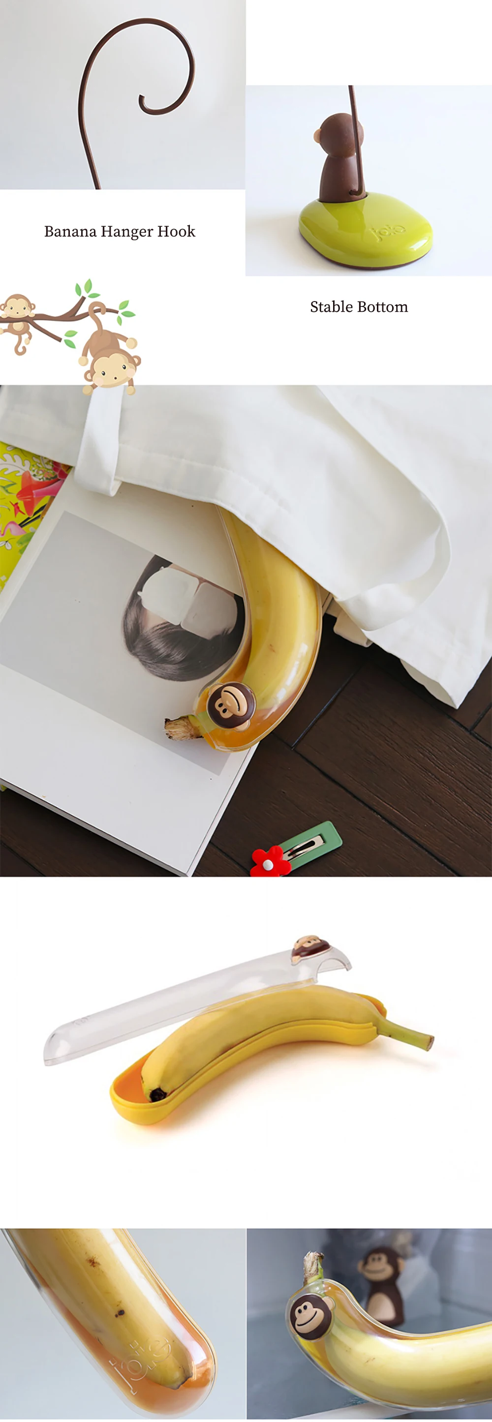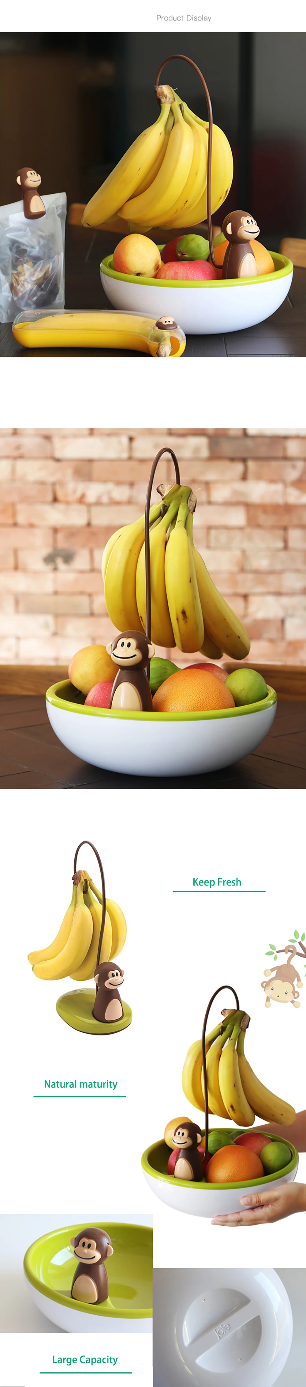 Позволяет бананам ровнее созревать без ушибов; Веселый и прихотливый дизайн обезьяны