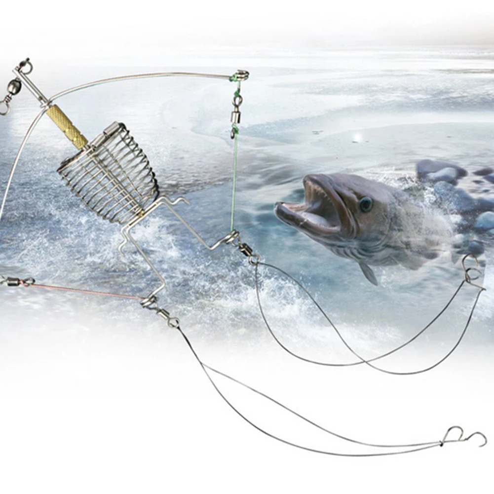 Многофункциональная Автоматическая ловушка пружинная клетка крючок рыболовная кормушка снасти пусковая установка
