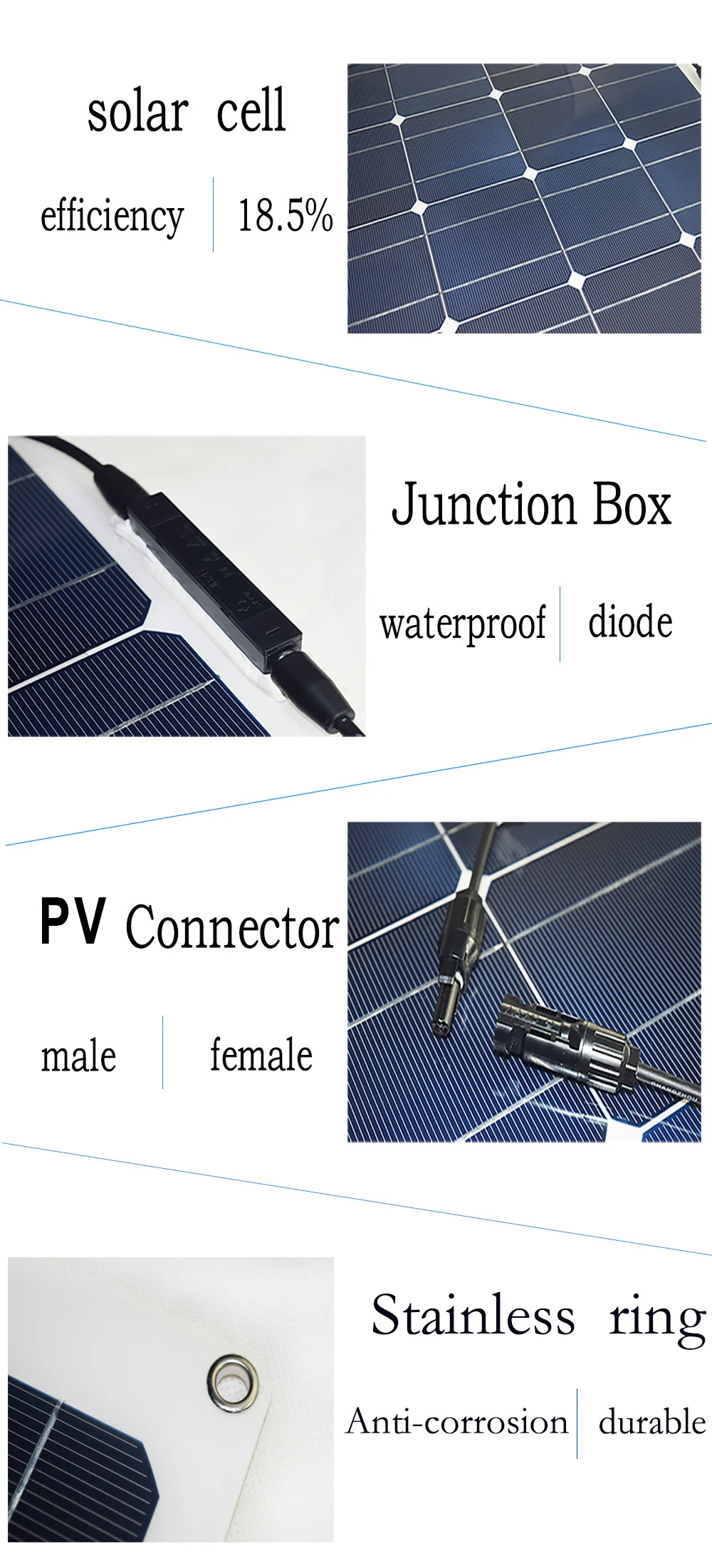 Тип: солнечная панель Номер модели: 100 Вт-16 В Гибкая солнечная панель: Да Размер: 1050*540*3 мм Количество ячеек: 32 шт. Макс. Мощность: 100 Вт Is_customized: Да Материал: монокристаллический кремний
