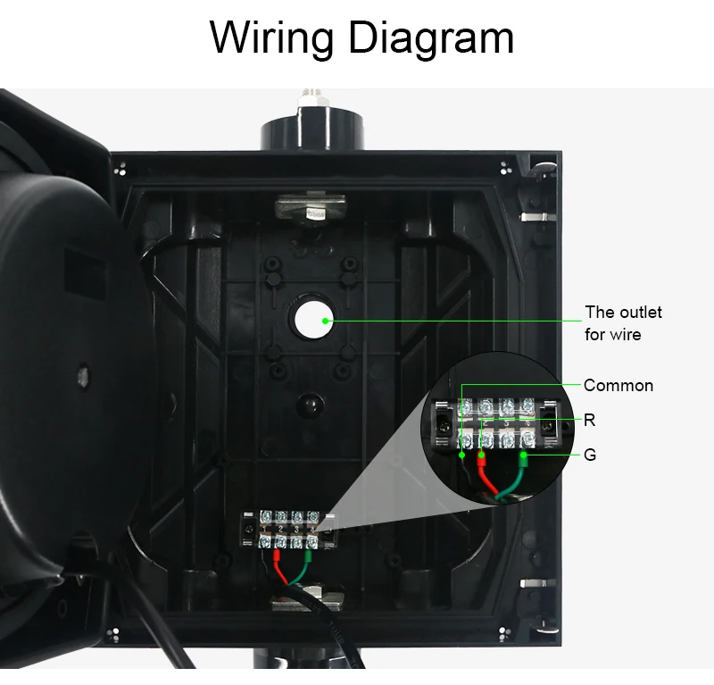 4.Рабочее напряжение и простота установки:Рабочее напряжение DC9-36V или 85V-265VAC; Установка может быть горизонтальной или вертикальной. Красный светильник к R терминалу, зеленый светильник к G терминалу, общий Это общественная линия.