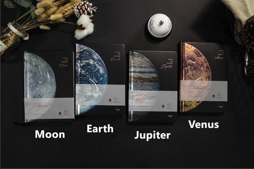 Большой красивый дневник "Planet Dream" Посылка включает в себя один ноутбук 220 страниц выложенных бумаг Высококачественная жесткая картонная крышка Большой размер: 12,8 см x 18,8 см Гладкое письмо, 180 градусов разложено, легко писать Качественное производство, экологически чистые чернила, хорошо подходят для глаз Подходит для учебы, работы, путешествий и подарка Доступно 4 чехла: луна, земля, Юпитер и Венера (см. Изображение ниже) Быстрая обработка и хорошая упаковка