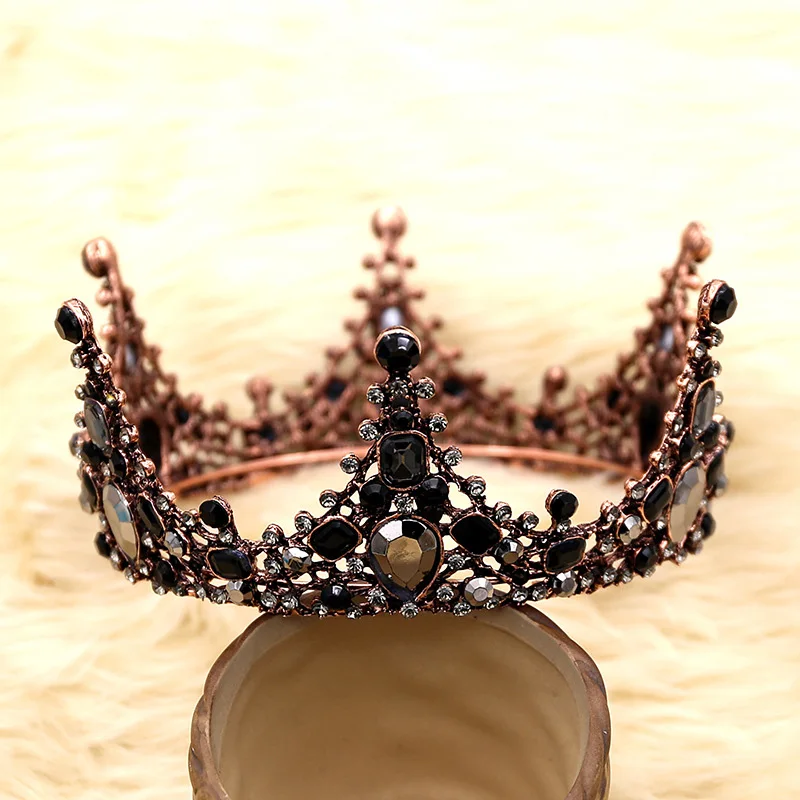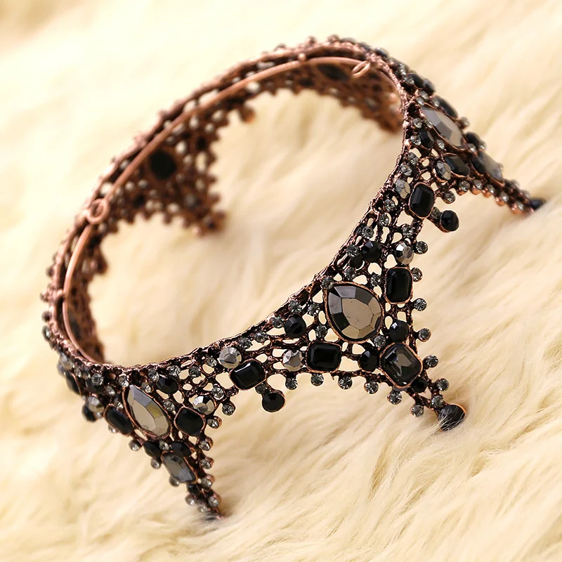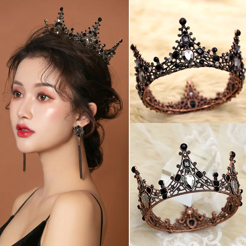 Женские Свадебные короны в стиле барокко, черные блестящие очаровательные Стразы для невесты, свадебные аксессуары для волос, SMR88